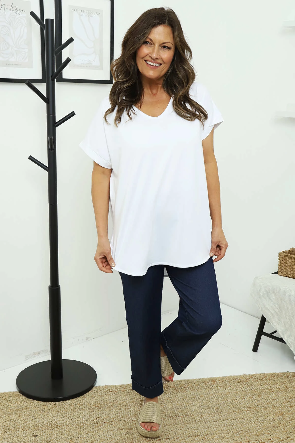 Introducing the Ailani Cotton Top, a versatile wardrobe essential crafted from soft, breathable cotton. Featuring a flattering V neckline and comfortable short sleeves, this top offers ease and style for everyday wear. Its rounded hemline with side splits adds a subtle touch of movement and modernity, making it perfect for layering or wearing on its own. Designed to support your comfort and confidence throughout the day.