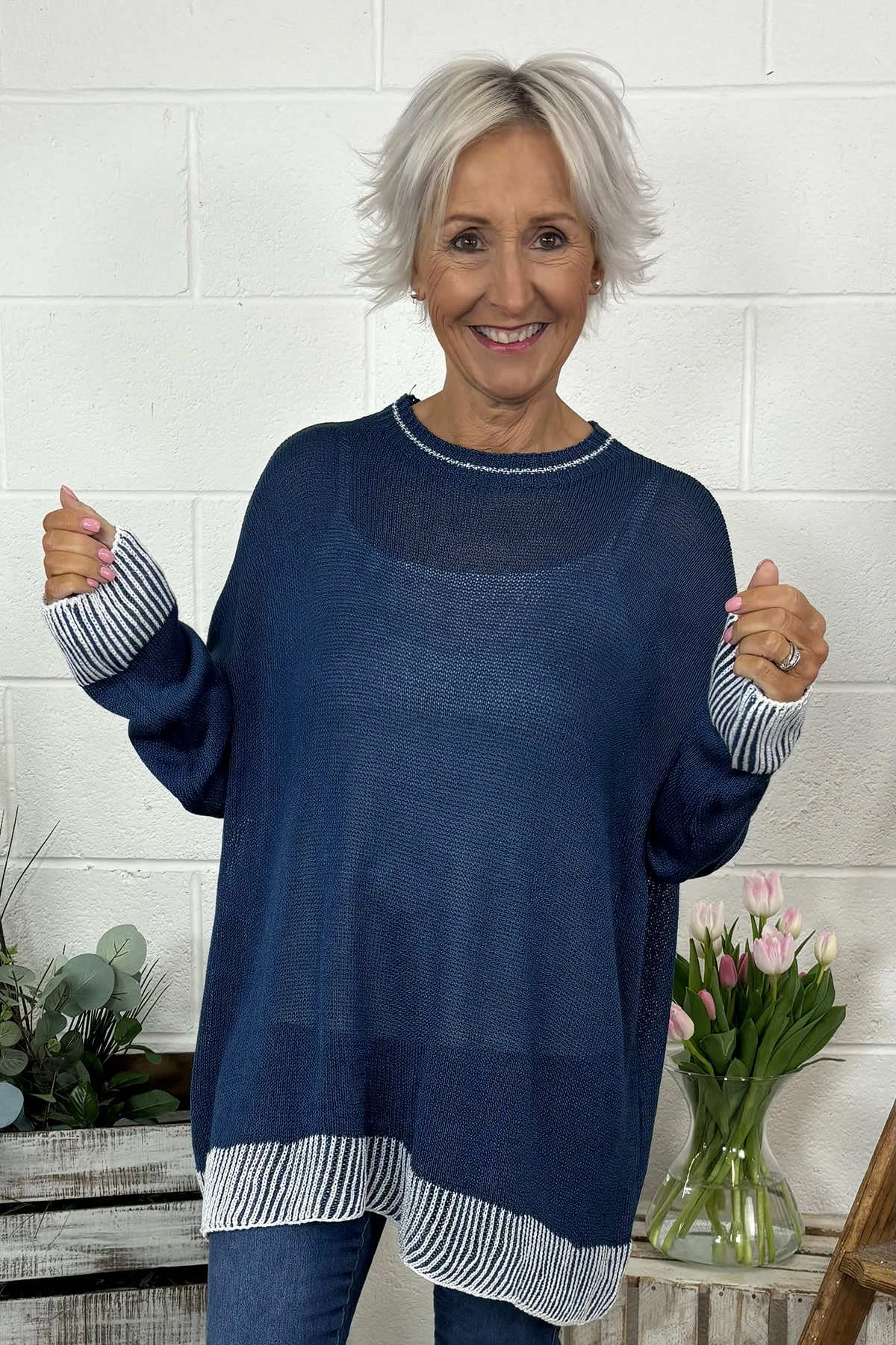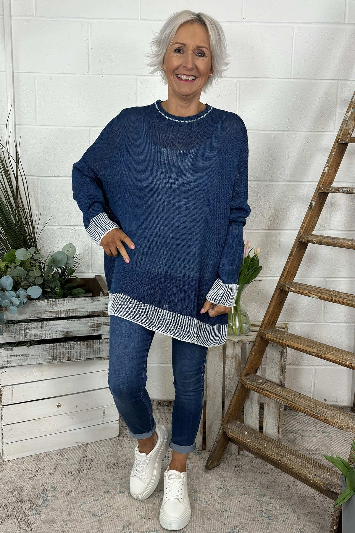 Stay stylish with our Aldeburgh Knit Top. Made of soft fine knit with bold shades and a contrasting trim on the cuffs, hemline, and neckline. Perfect for any occasion, it’s a versatile addition to your wardrobe.