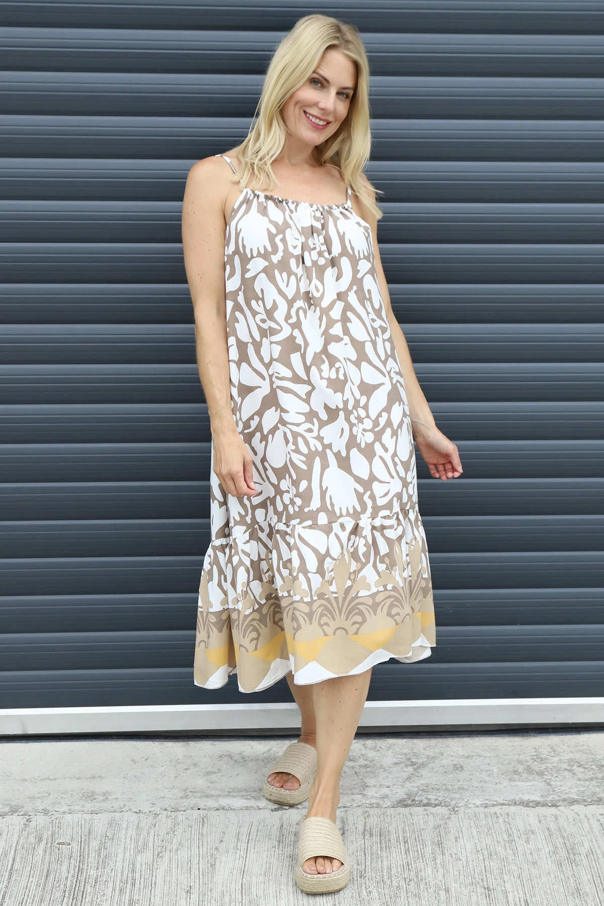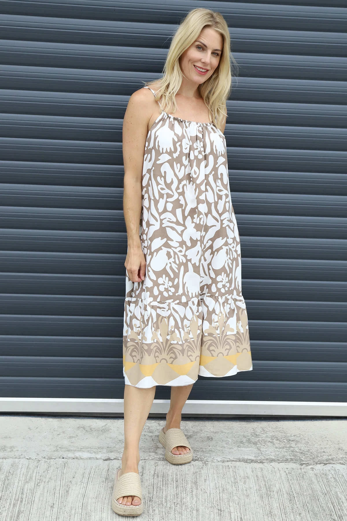 Refresh your style with the Alethea Print Strap Dress. The Alethea Print Strap Dress features delicate thin straps and a vibrant all-over print that brightens your look. The charming frill hem adds a feminine touch, making this dress a versatile choice for both casual days and special outings. Comfortable and flattering, it’s designed to help you feel confident.