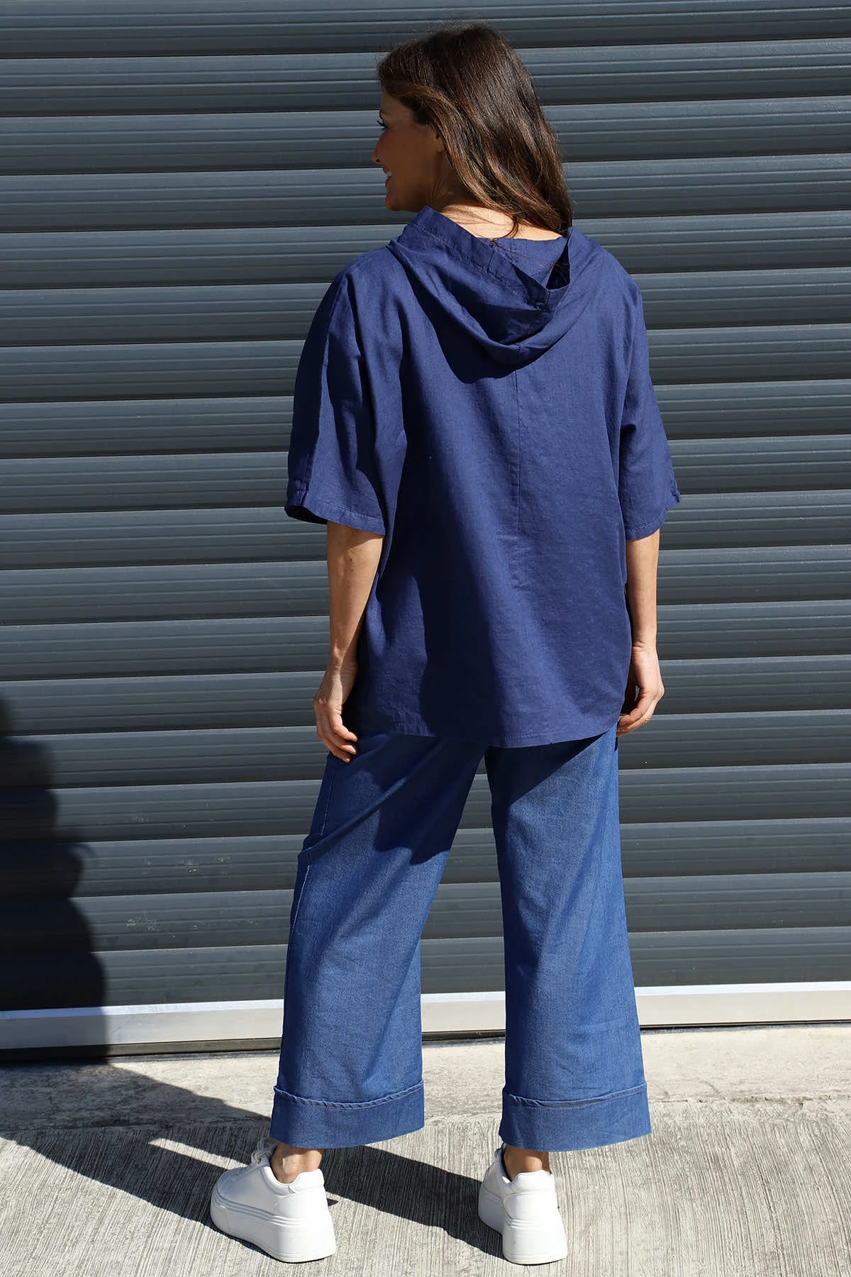 Upgrade your wardrobe with our Annalee Hooded Linen Top. Made with a linen and cotton mix, this top offers a perfect blend of comfort and style. With a versatile hood and short sleeves, dress it up or down for any occasion. Elevate your fashion game with this must-have piece.