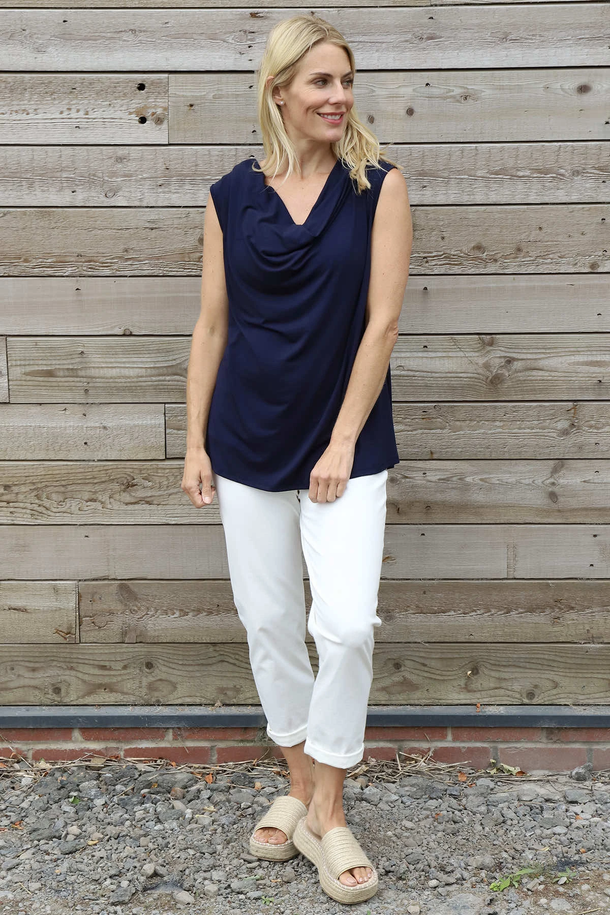 Introducing the Antonina Cowl Neck Top, designed for effortless style and comfort. This sleeveless top features a flattering cowl neck that drapes beautifully, making it easy to wear for any occasion. Its solid colour offers versatile pairing options, ensuring you look polished with minimal effort. Perfect for layering or wearing on its own, this top supports your wardrobe with both simplicity and elegance.