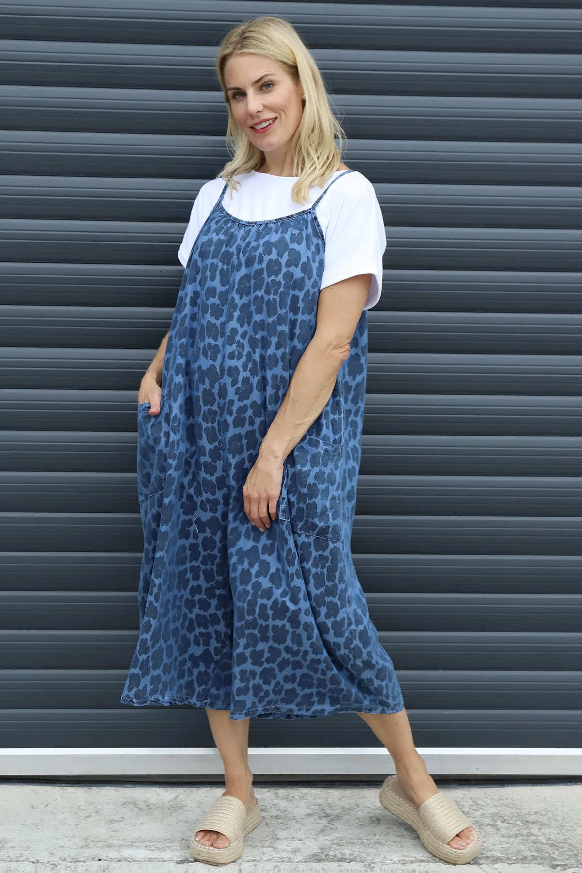 Update your wardrobe with the Aviva Leopard Print Denim Jumpsuit. Featuring thin straps and practical pockets, this short-length jumpsuit combines style and functionality. The all-over leopard print adds a bold, trendy touch, perfect for making a confident statement wherever you go. Comfortable and chic, it’s an easy choice for your everyday look.