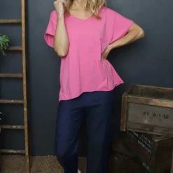 Tova V-Neck Cotton Top Fuchsia