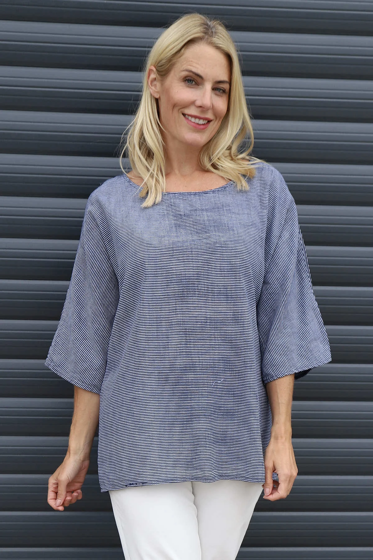Experience effortless style and comfort with the Caylen Stripe Cotton Top. Featuring thin horizontal stripes and a classic round neckline, this top is crafted from soft cotton for breathable wear. Its half sleeves provide just the right coverage, making it perfect for everyday ease while keeping you looking polished.