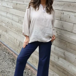 This Celestina Tie Detail Linen Top combines breathable linen fabric with a flattering V-neck and elegant rope tie detail for a comfortable yet stylish look. The sleeves add a touch of sophistication, making it perfect for both casual and dressier occasions. Designed to keep you feeling fresh and confident throughout the day.