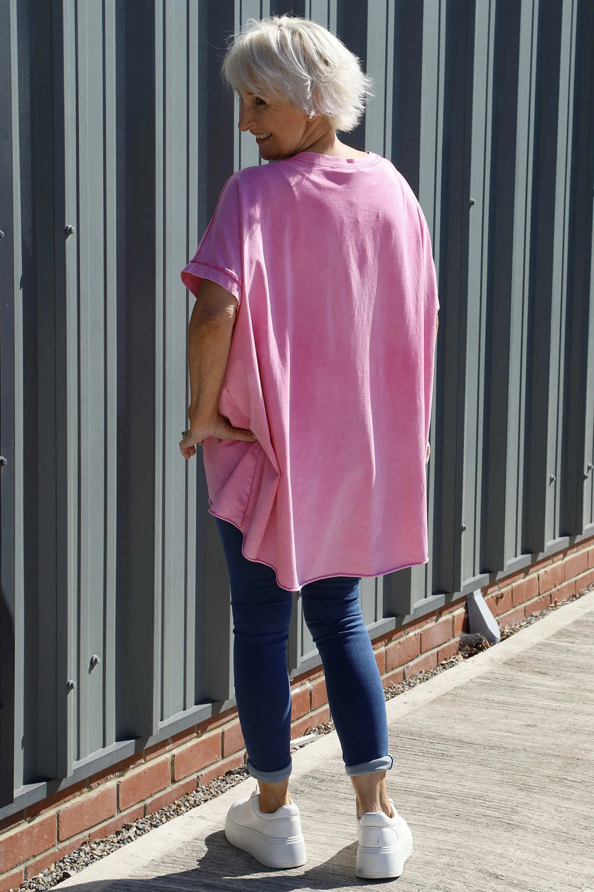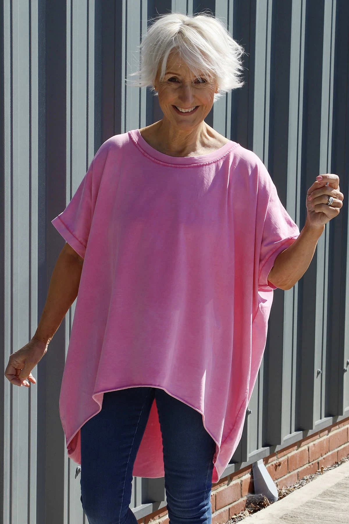 Celina Dipped Hem Washed Cotton Top Fuchsia