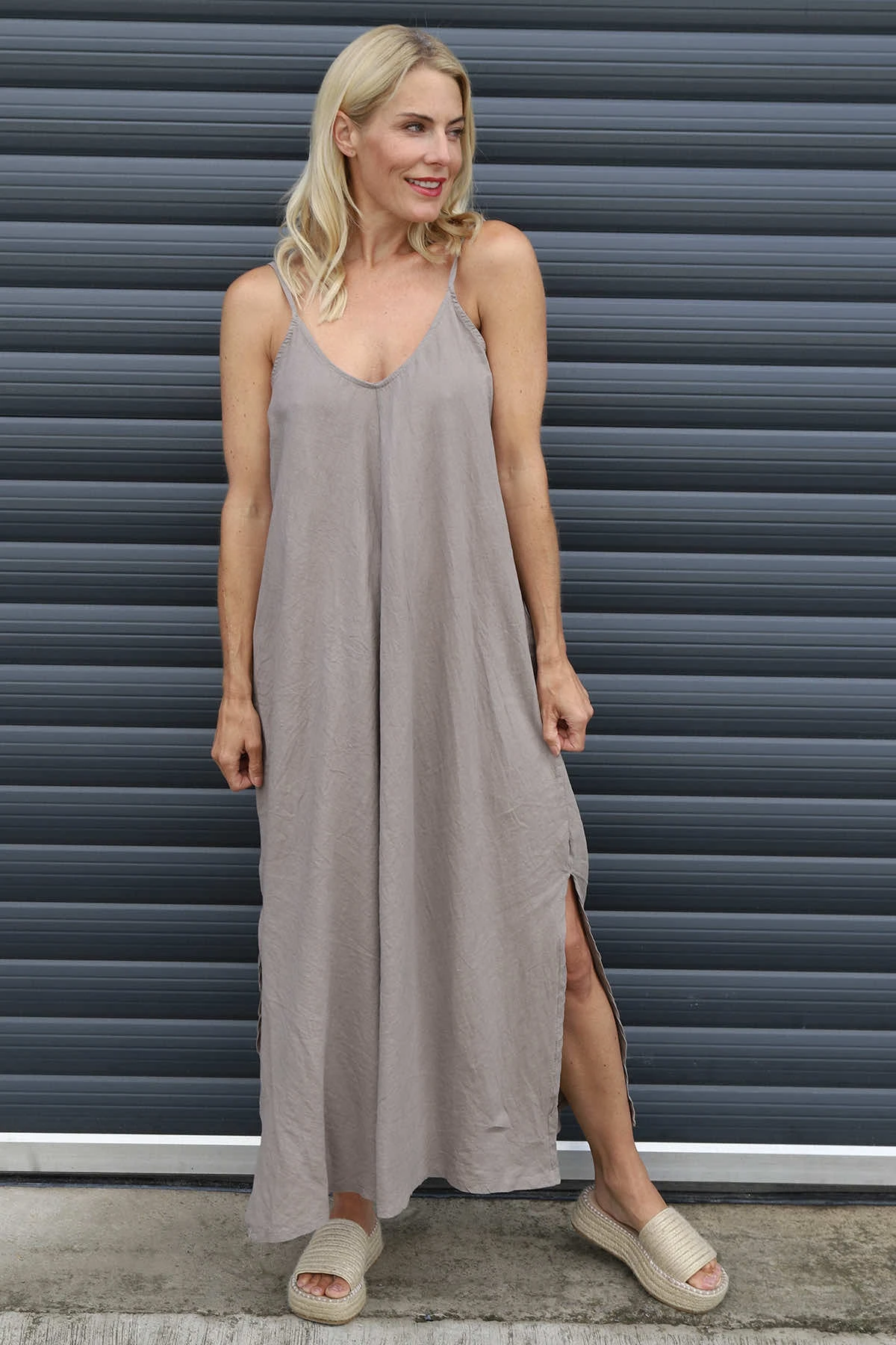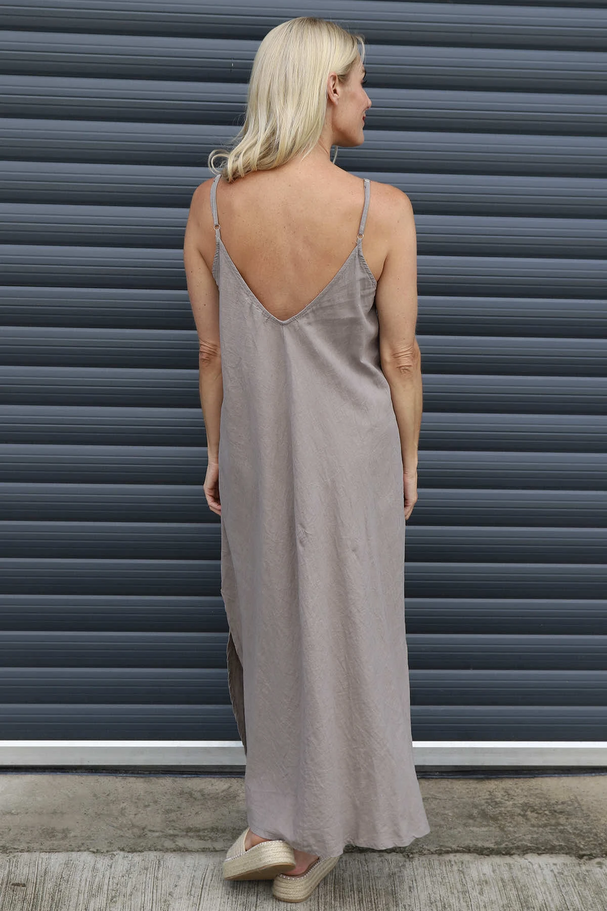 Cesca Strap Linen Dress Mocha