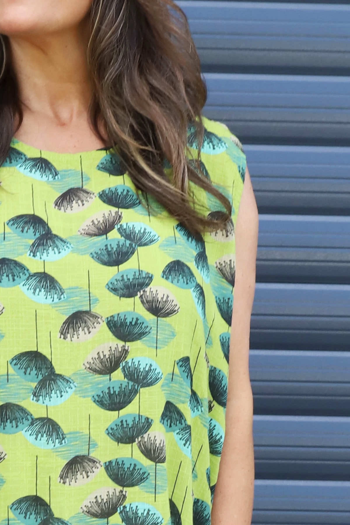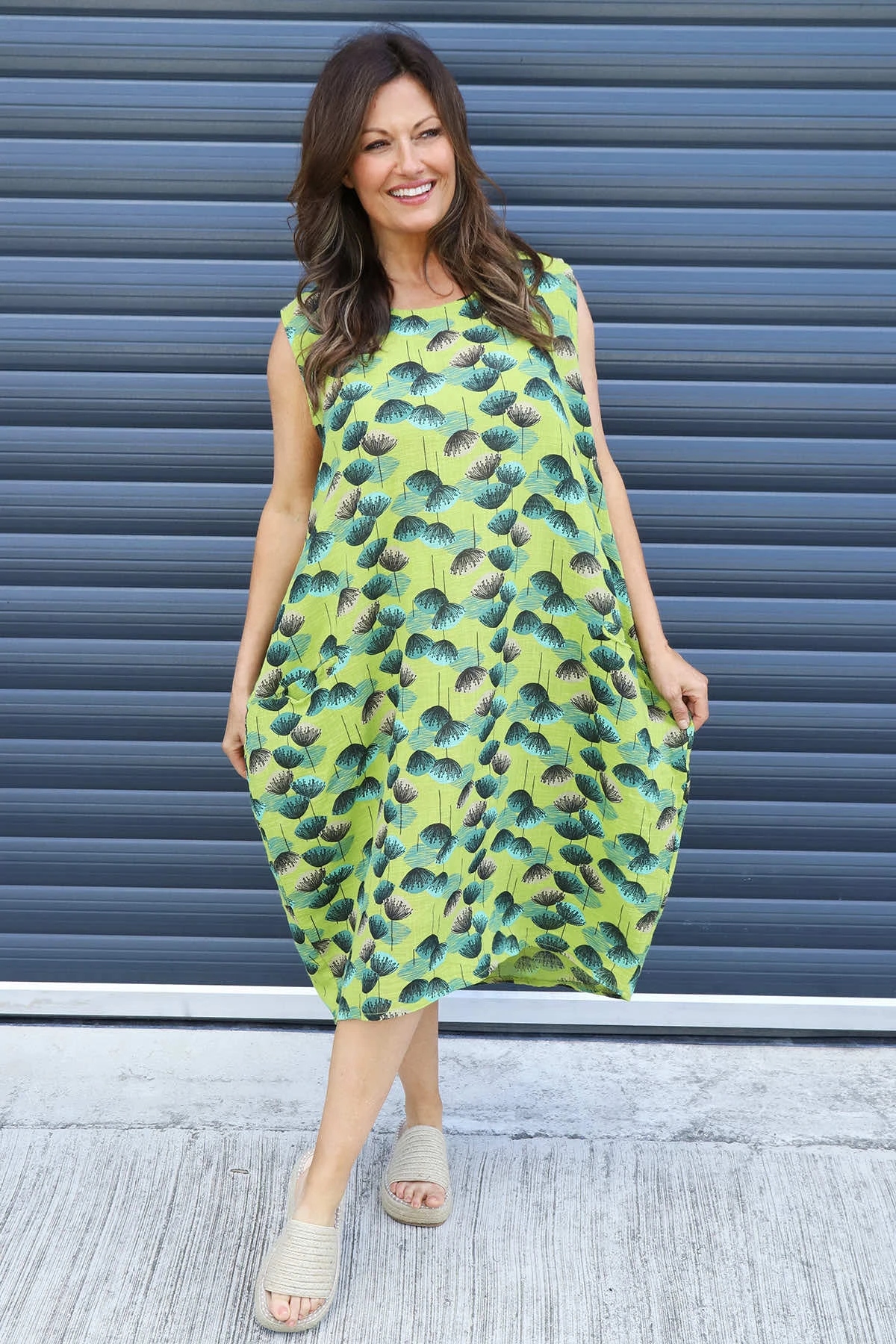 Chloe Print Sleeveless Cotton Dress Olive
