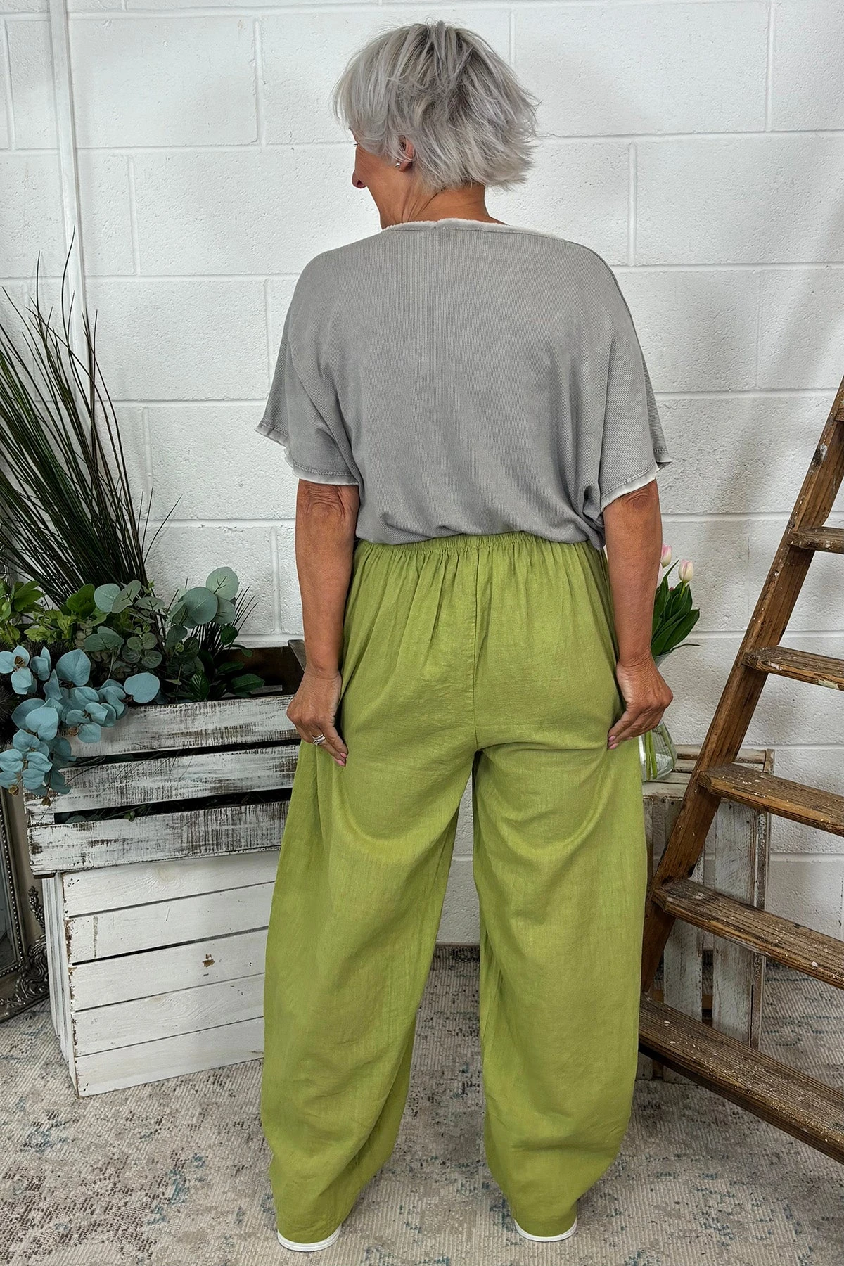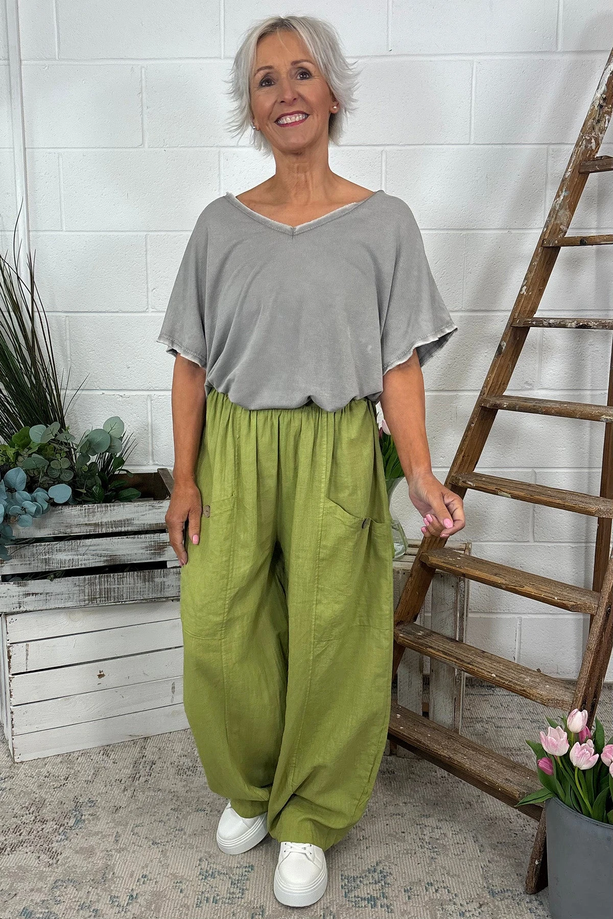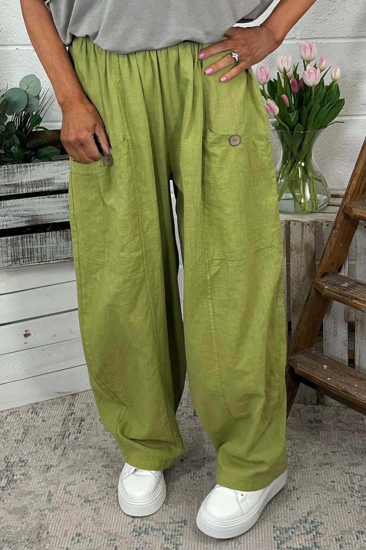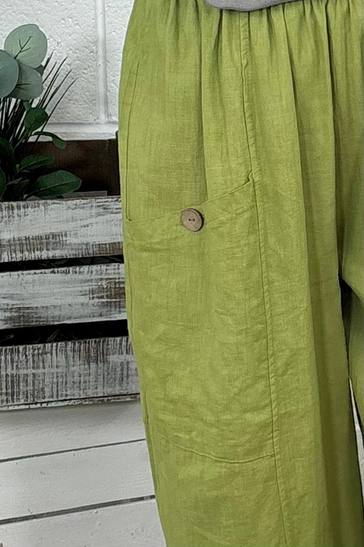 Clarisse Button Pocket Linen Trousers Olive