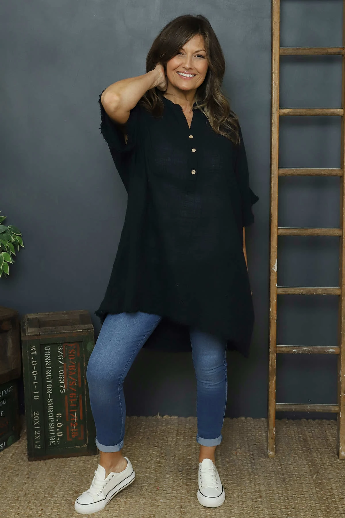 The Colette Button Cotton Top is the perfect addition to your everyday wardrobe. Designed and crafted by made in Italy, this top provides effortless style and flattering details. With its button accents, it adds a touch of elegance to any outfit. Comfortable and versatile, it’s the perfect choice for a stylish and easy-going look.