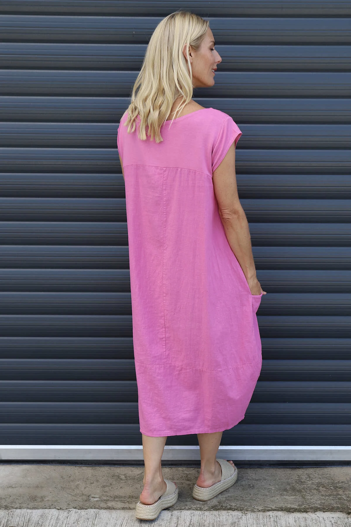 Refresh your wardrobe with the Cyrilla Linen Dress. Featuring a stretch cotton top section and breathable linen fabric, it offers ease of movement and all-day wearability. The flattering V neckline and cap sleeves add a feminine touch, while practical pockets provide convenience. Perfect for warm days, this dress combines effortless elegance with everyday functionality.