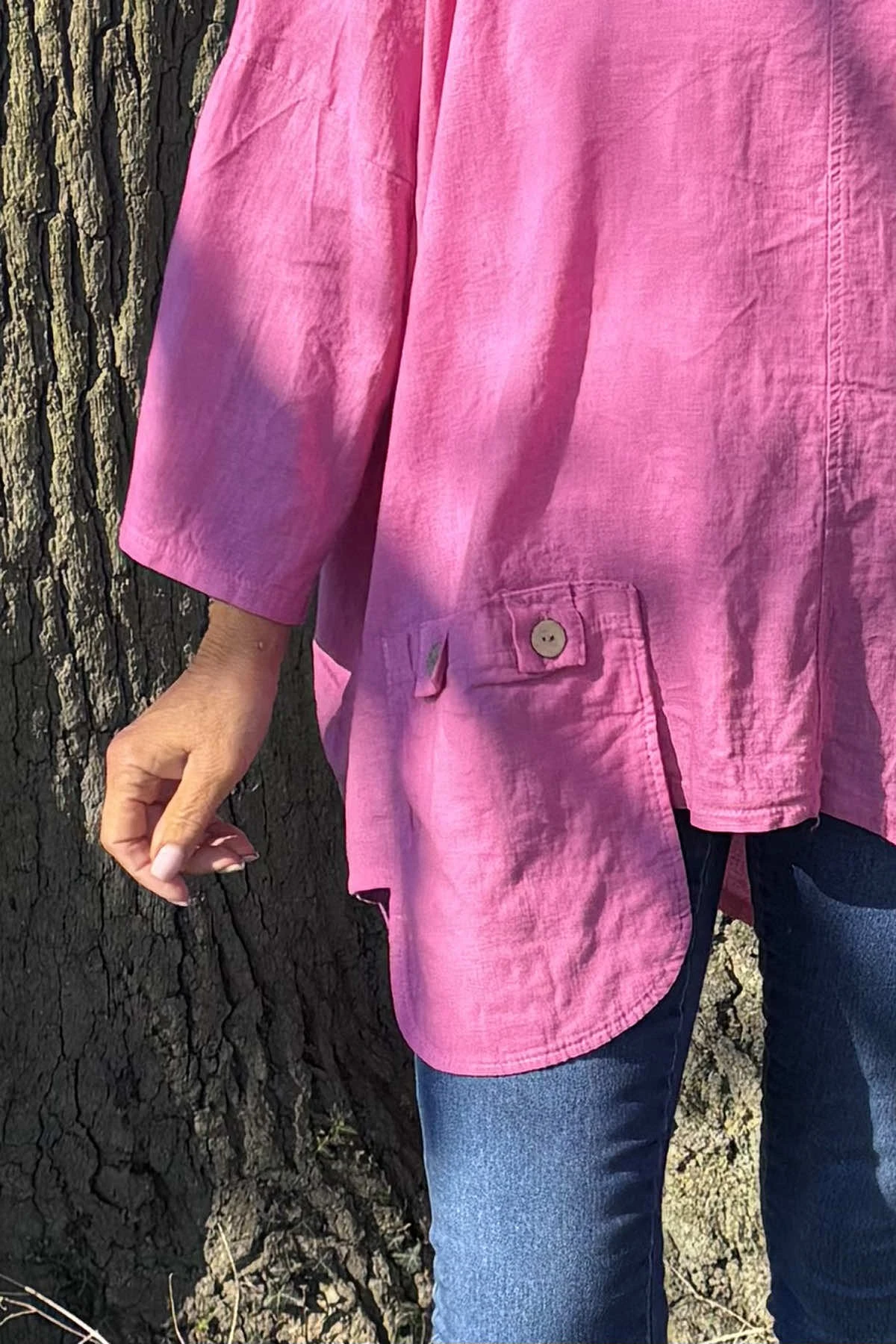 Looking for a stylish and comfortable top? Look no further than our Made In Italy Daisy Linen Top! Made from high-quality linen, this top boasts a round neckline, asymmetrical hemline, a pocket and seam details for added style. You’ll love how it looks and feels on you.