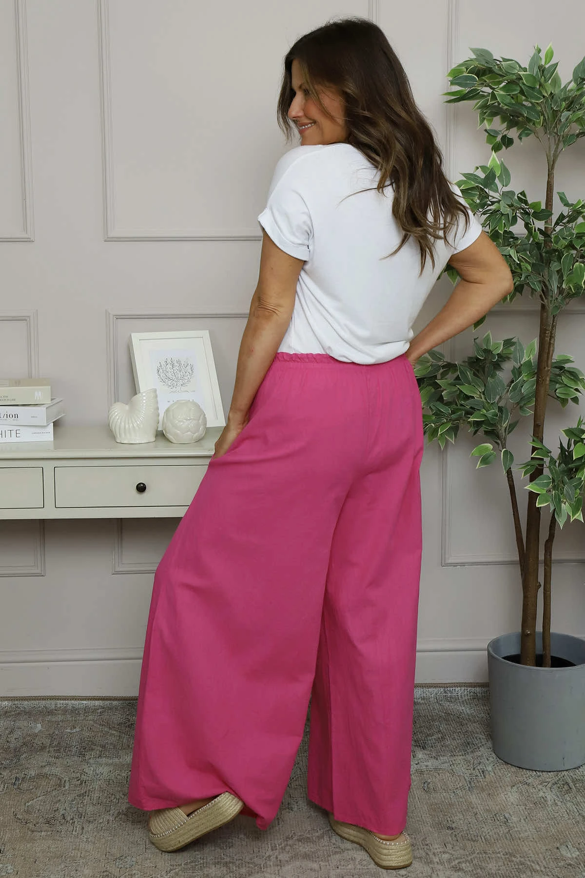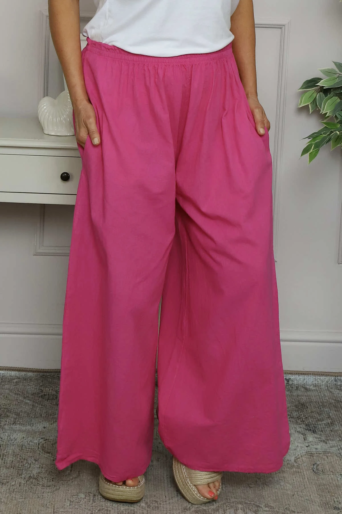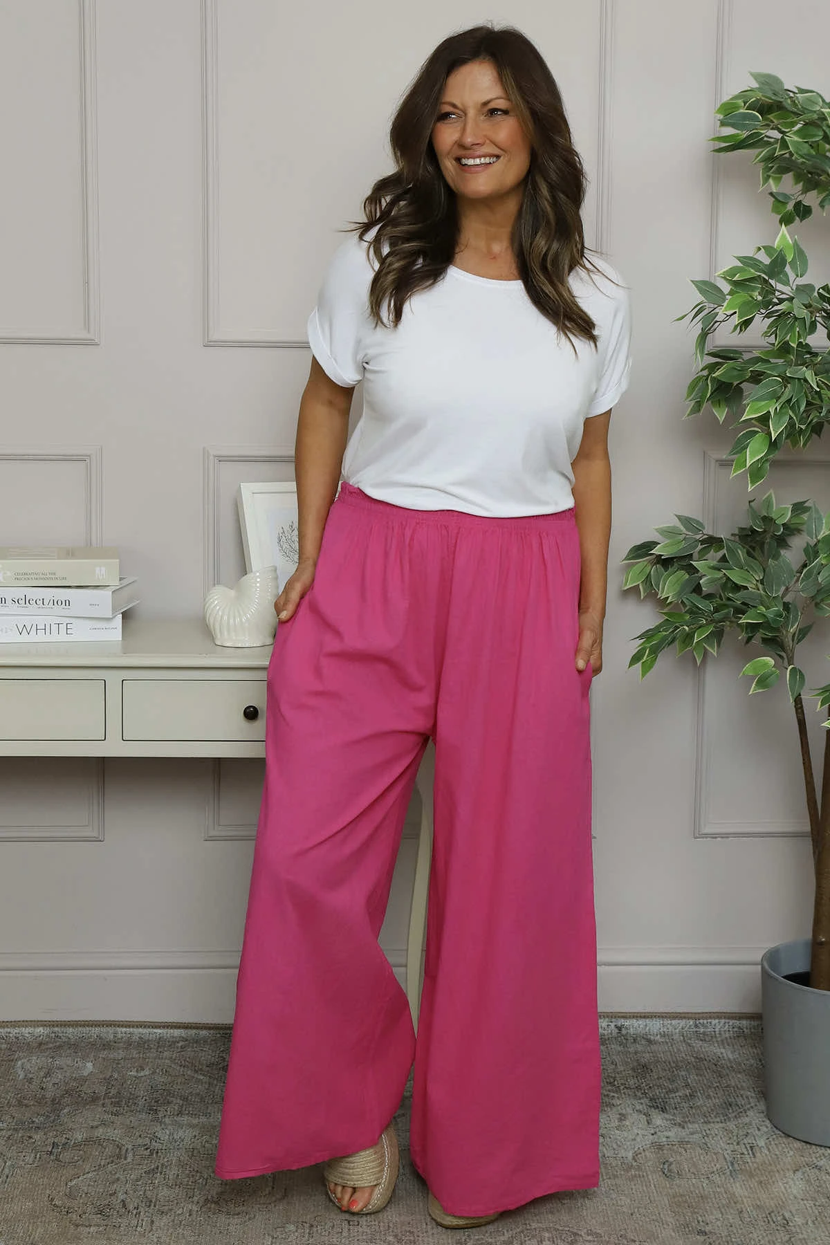 Experience effortless comfort with the Daphne Linen Trousers. Crafted from breathable linen, these trousers feature an elasticated waist for a perfect fit and wide legs that allow freedom of movement. Practical pockets add convenience, making them ideal for everyday wear. Perfect for those seeking style without sacrificing comfort.