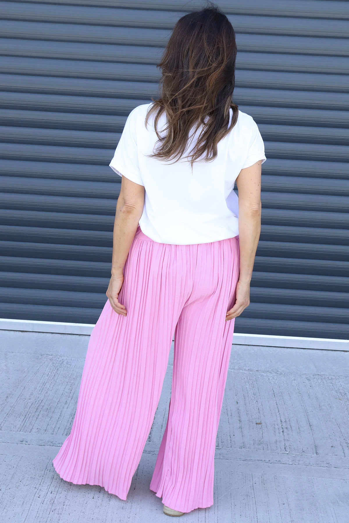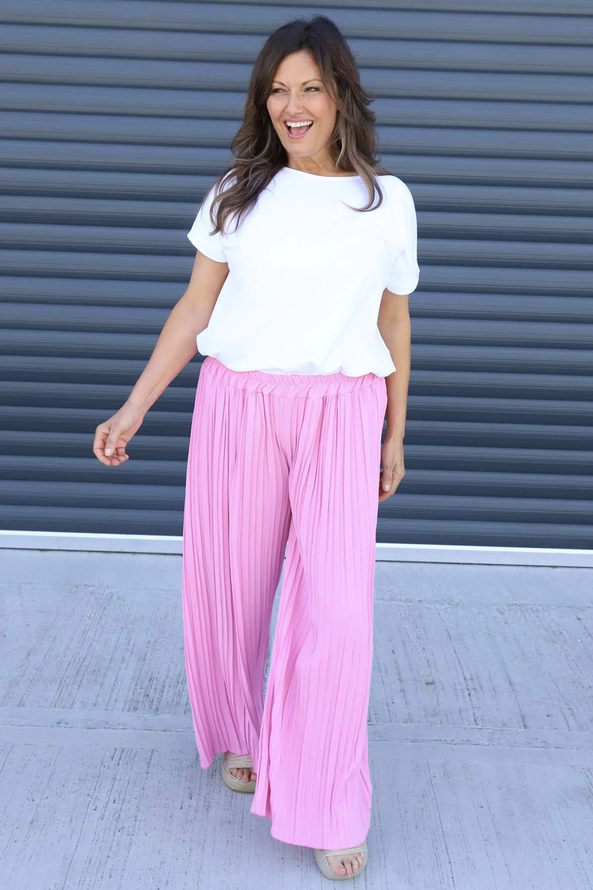 Emira Pleated Wide Leg Trousers combine comfort and style effortlessly. Featuring an elasticated waist for a perfect fit and elegant pleats that add texture, these trousers offer a flattering silhouette with their wide-leg design. Ideal for both casual and dressy occasions, they provide freedom of movement while keeping you looking polished and confident throughout the day.