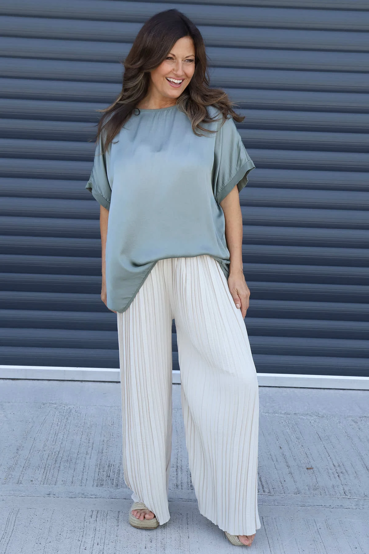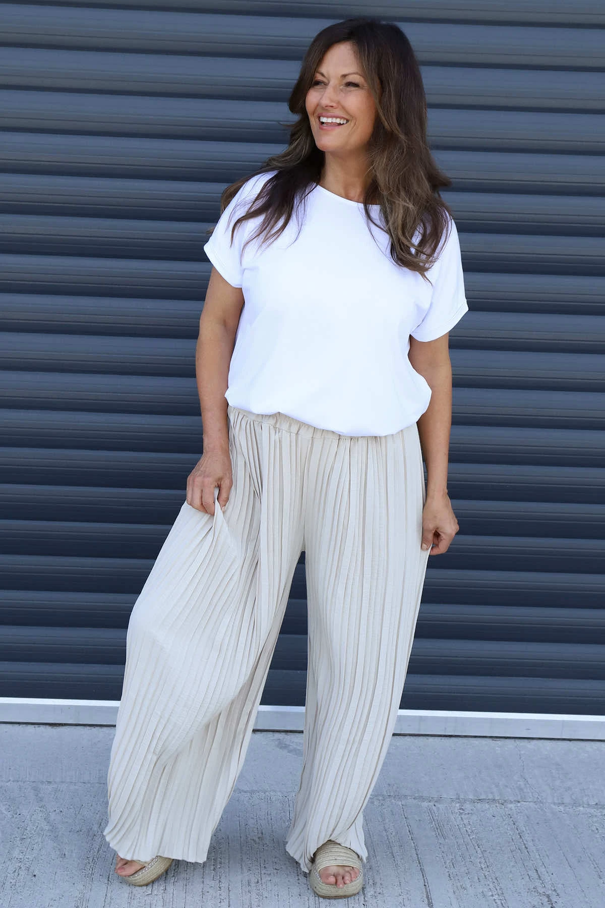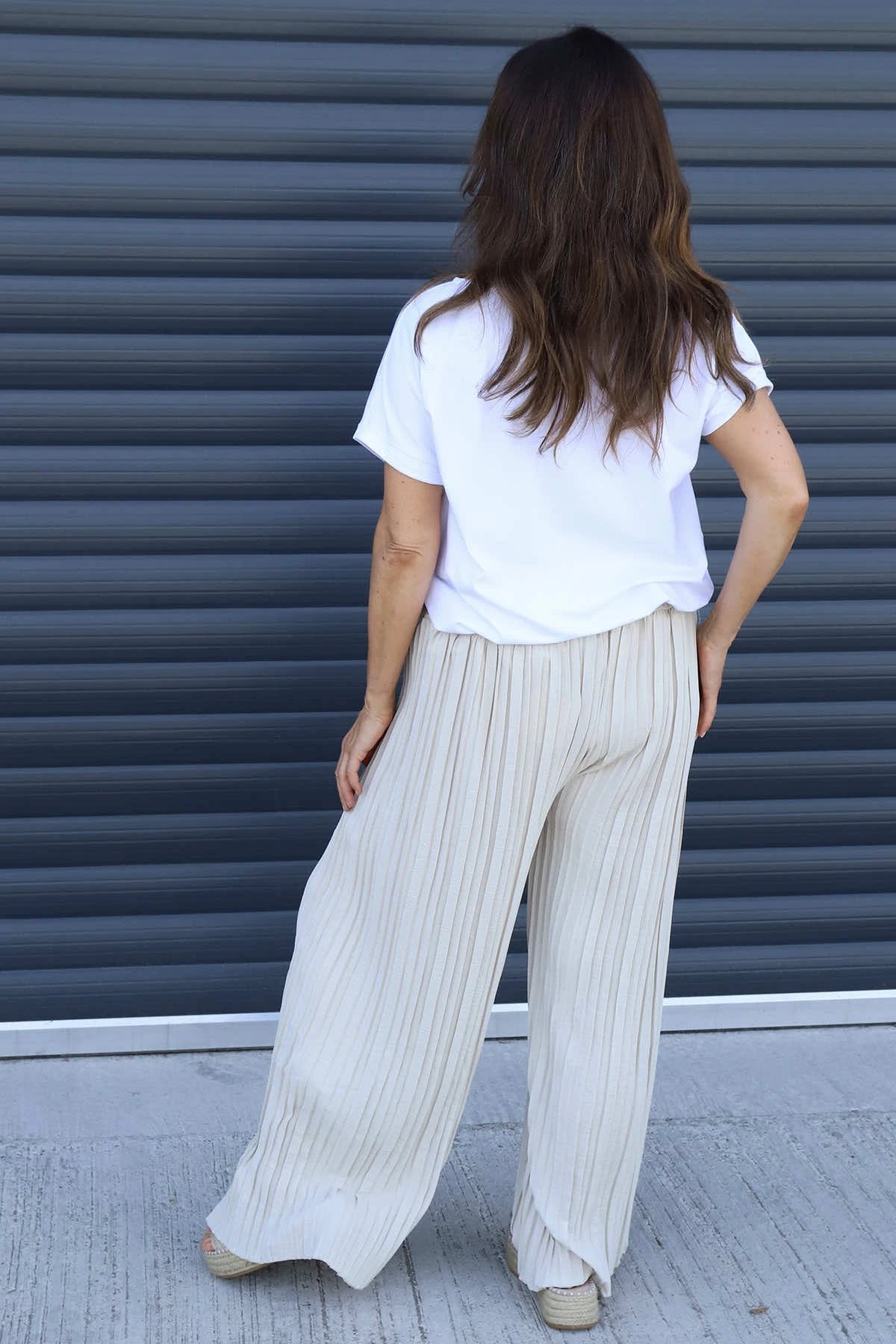 Emira Pleated Wide Leg Trousers combine comfort and style effortlessly. Featuring an elasticated waist for a perfect fit and elegant pleats that add texture, these trousers offer a flattering silhouette with their wide-leg design. Ideal for both casual and dressy occasions, they provide freedom of movement while keeping you looking polished and confident throughout the day.