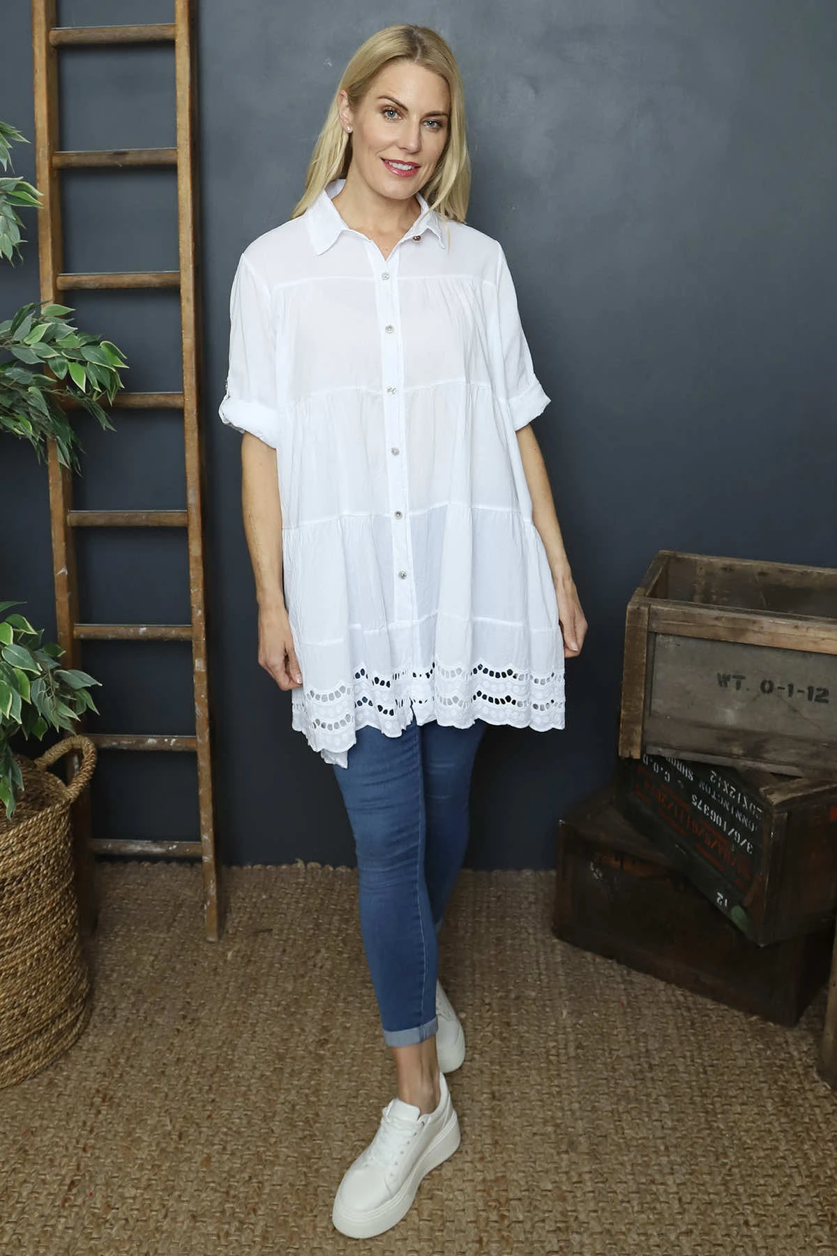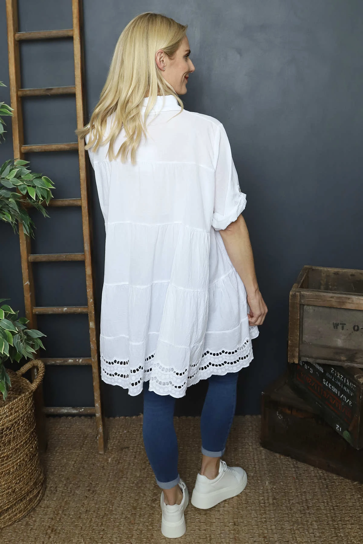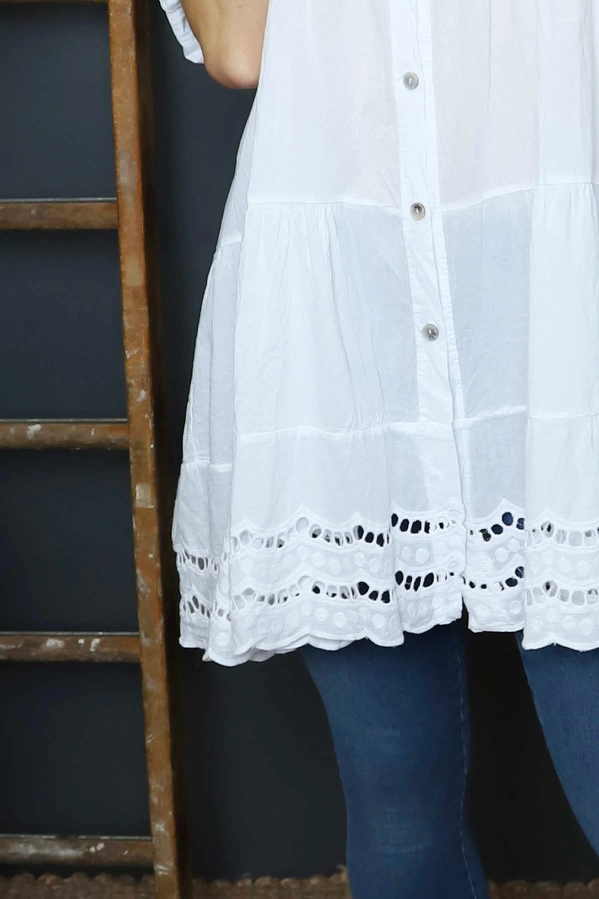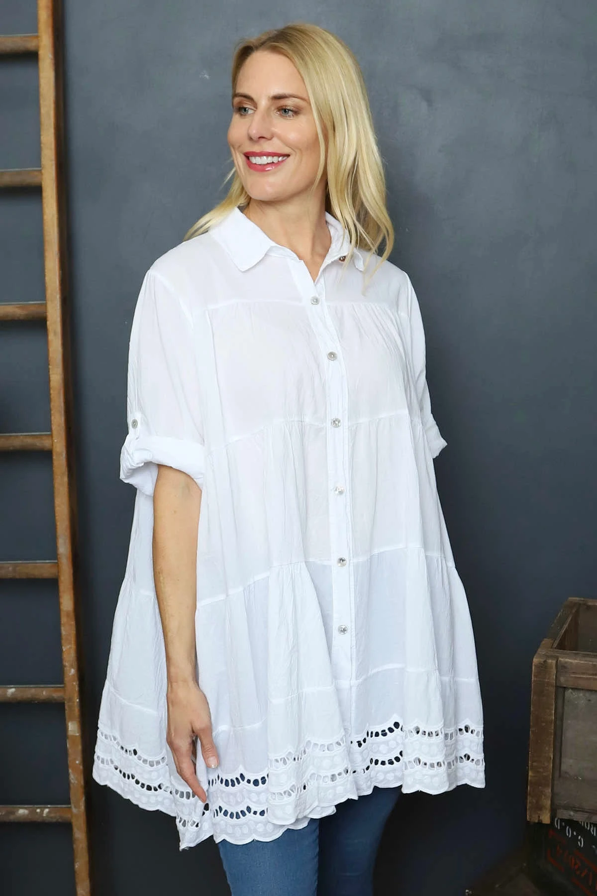 Ermina Tiered Cotton Shirt White