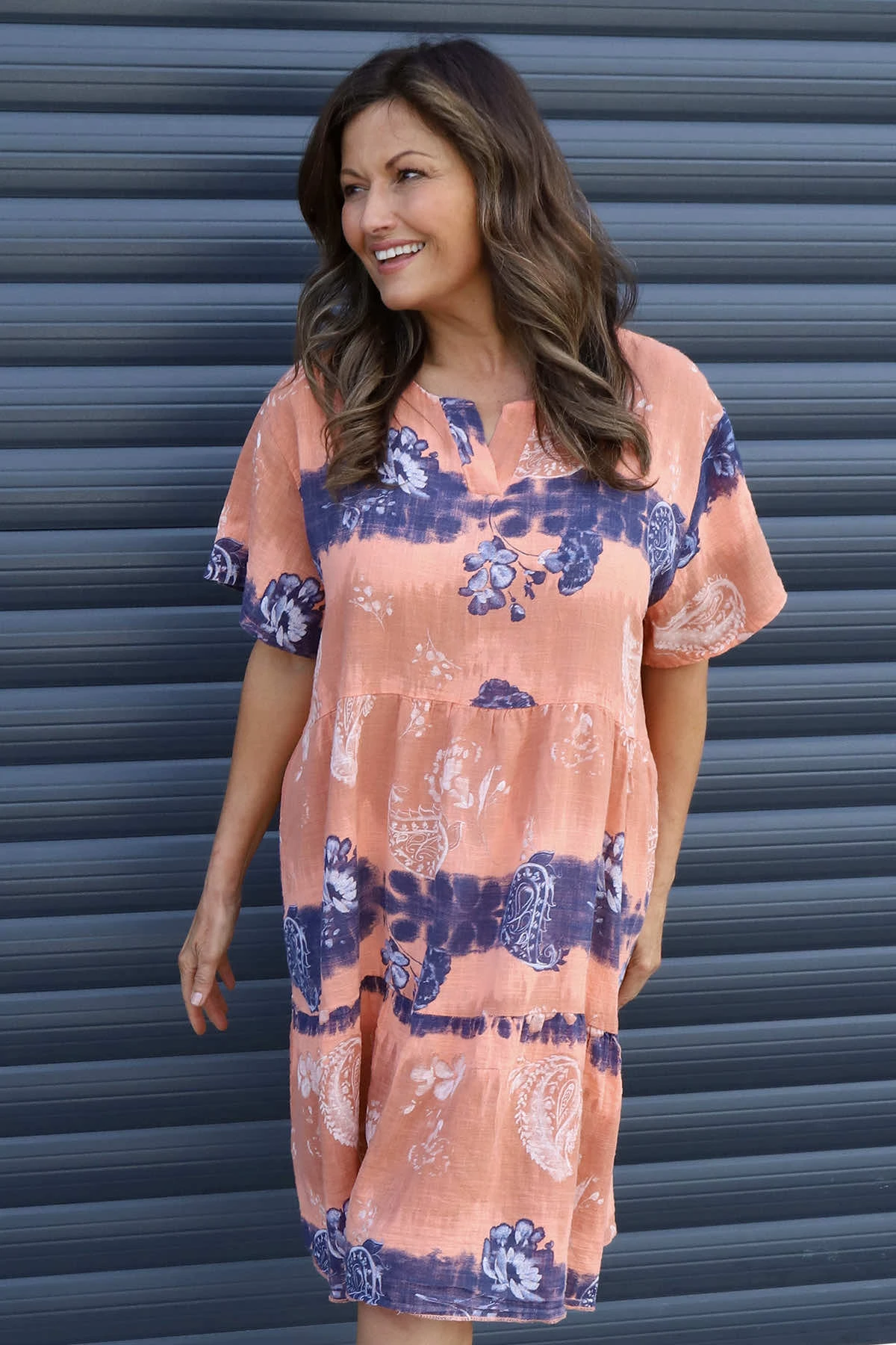 Erminia V-Neck Print Cotton Tunic Orange