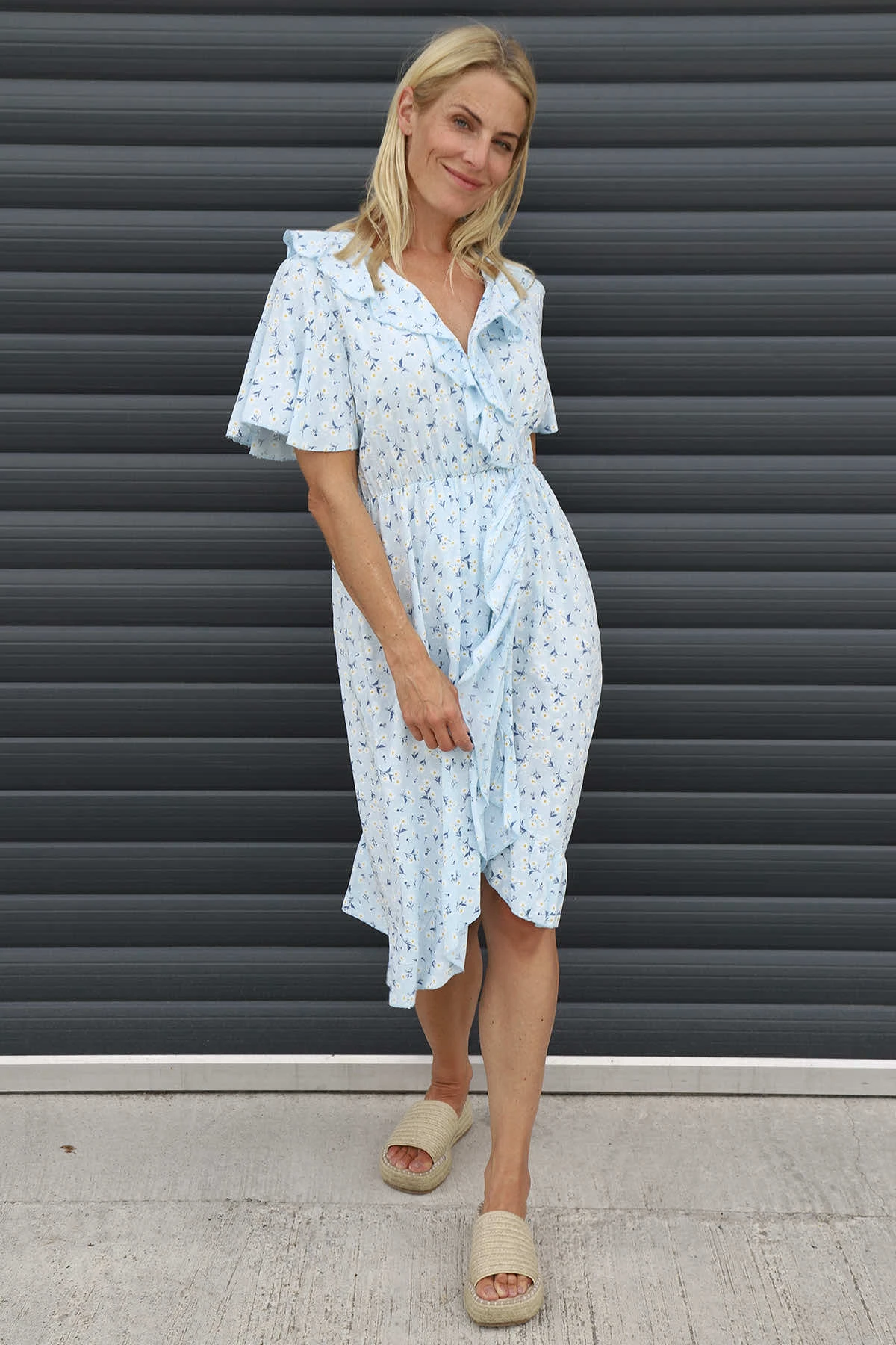 Embrace effortless elegance with the Etienne Floral Wrap Dress. Featuring a flattering elasticated waist and a chic wrap effect, this dress enhances your silhouette while providing comfort. The flutter sleeves and V neckline add a feminine touch, complemented by delicate ruffle details. Adorned with an all-over floral print, it’s perfect for any occasion where you want to feel confident and stylish.