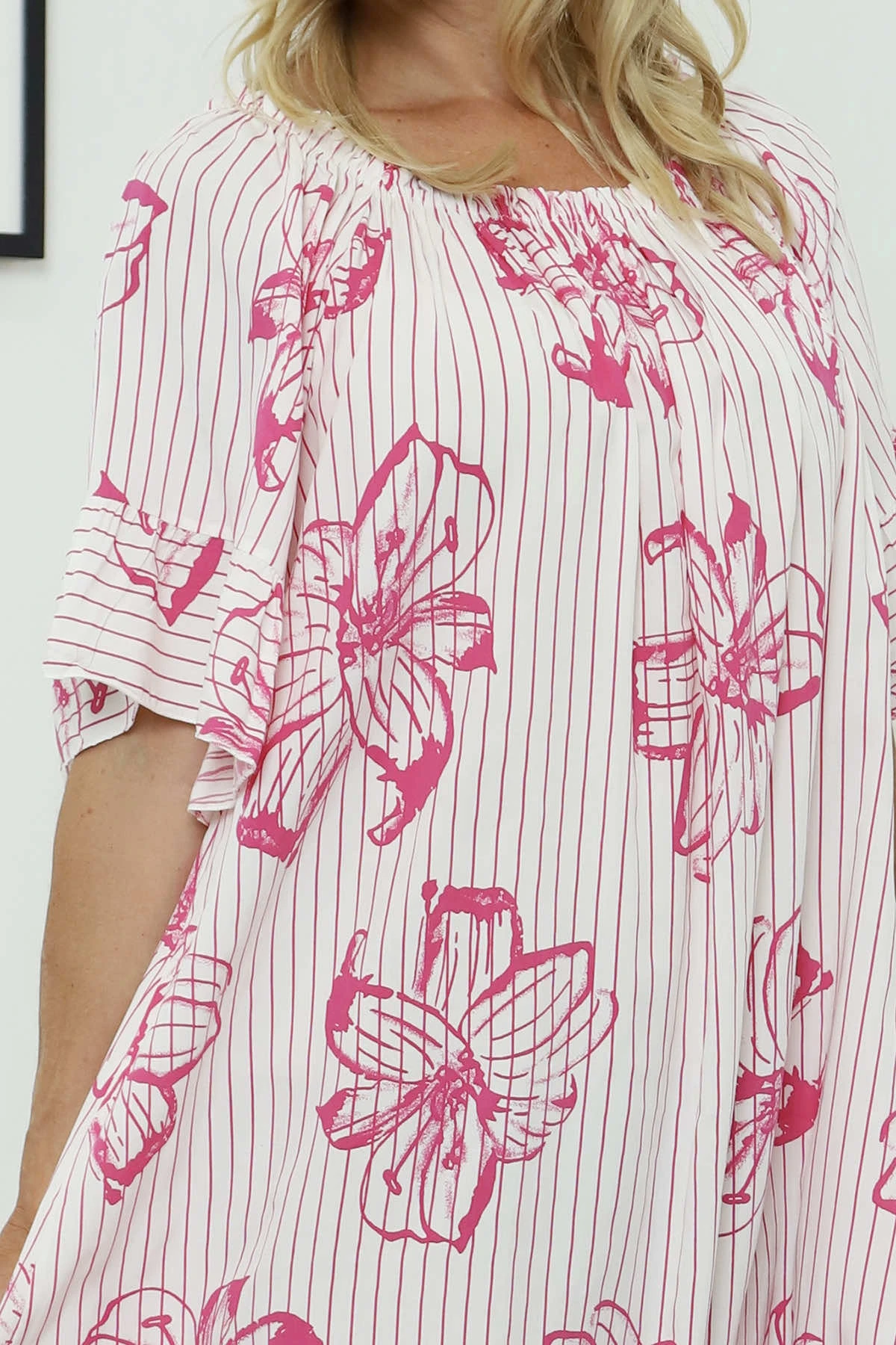 Fabiola Print Bardot Tunic Fuchsia