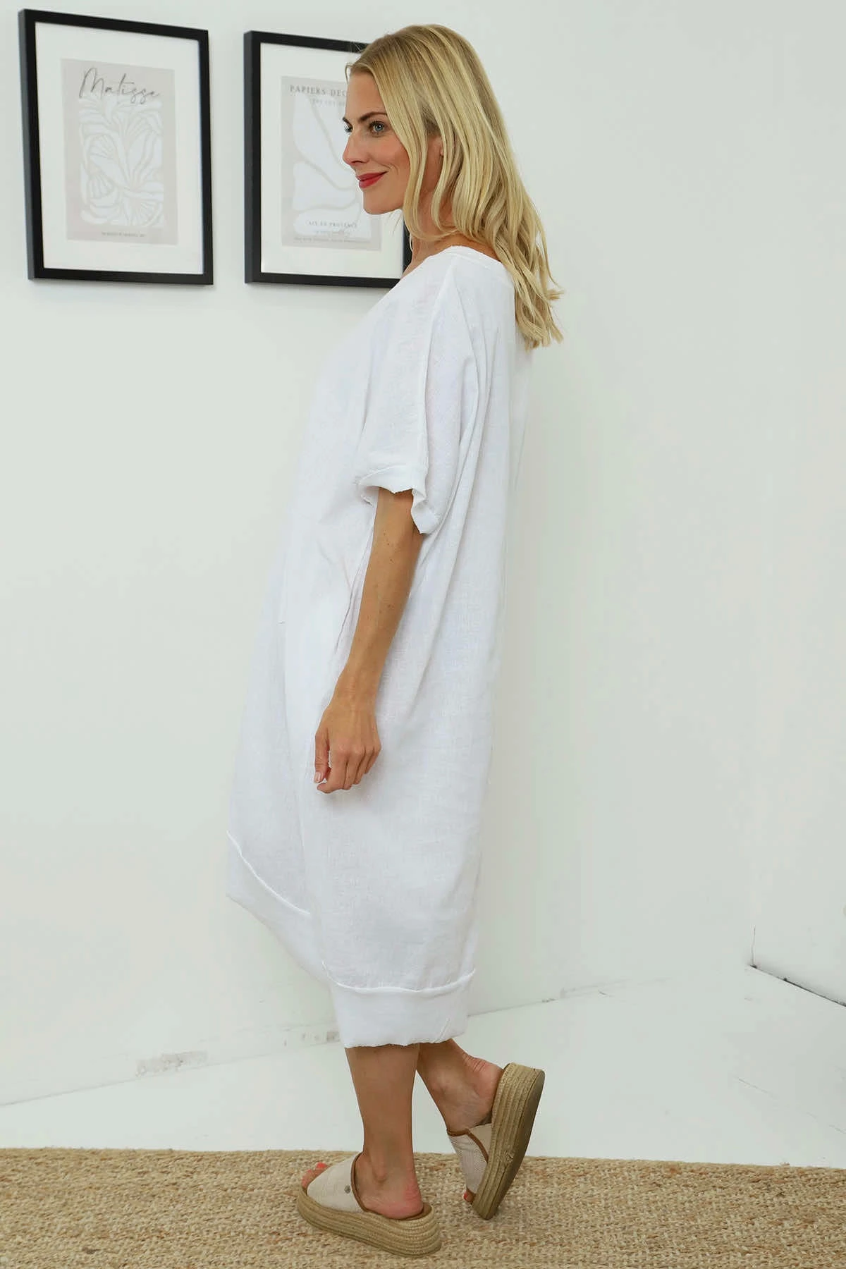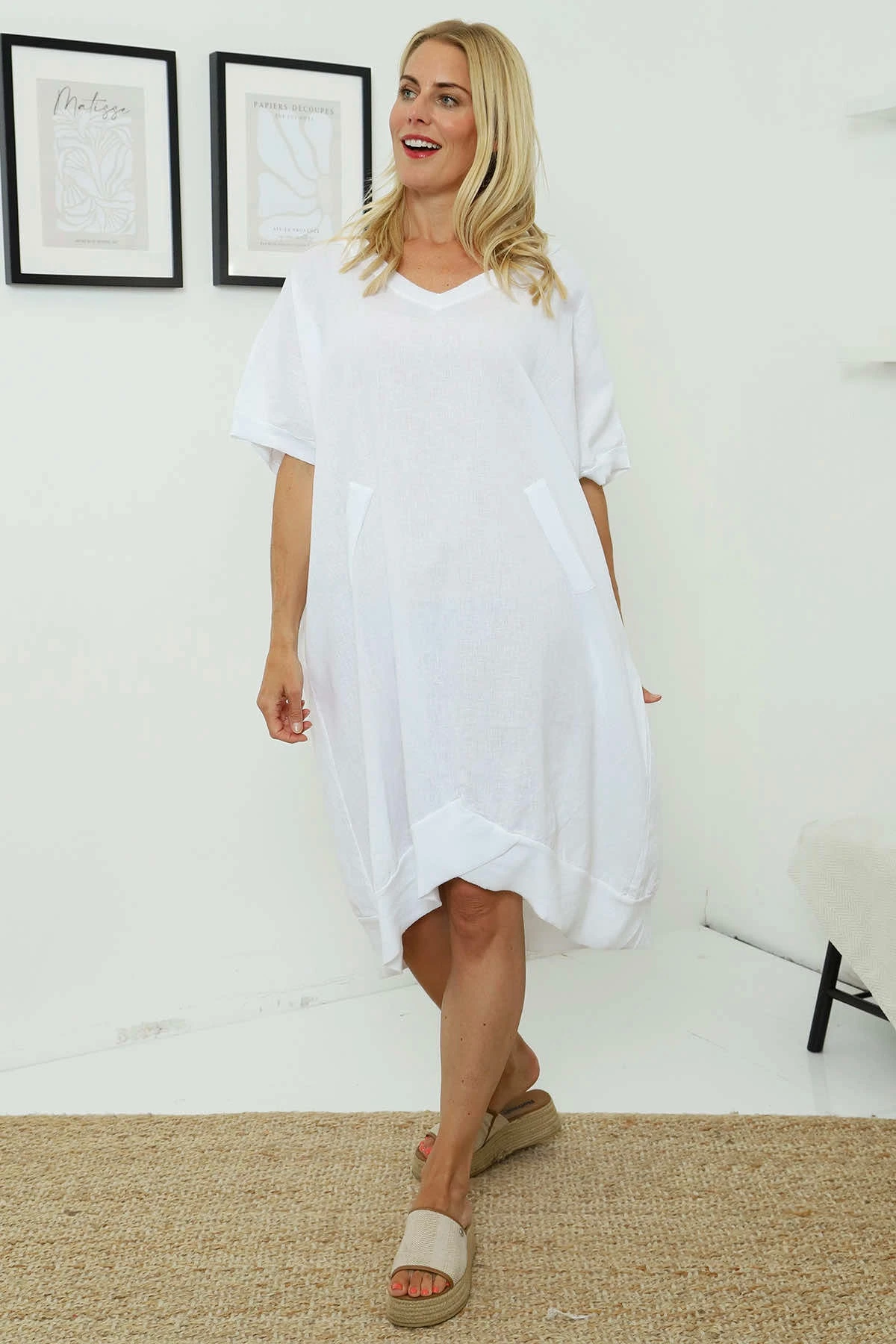 Fiamma V-Neck Linen Dress White