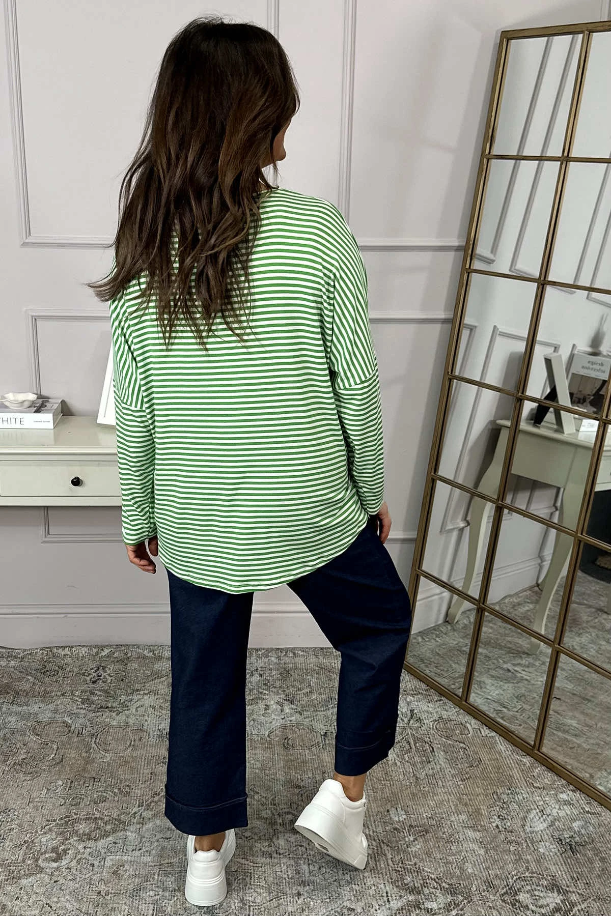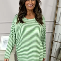 Introducing our Frances Stripe Sweat Top, the perfect addition to your wardrobe. Featuring a classic all-over stripe design and fitted sleeves, this top is made with soft fabric for maximum comfort. Stay on-trend and stylish in this must-have piece.