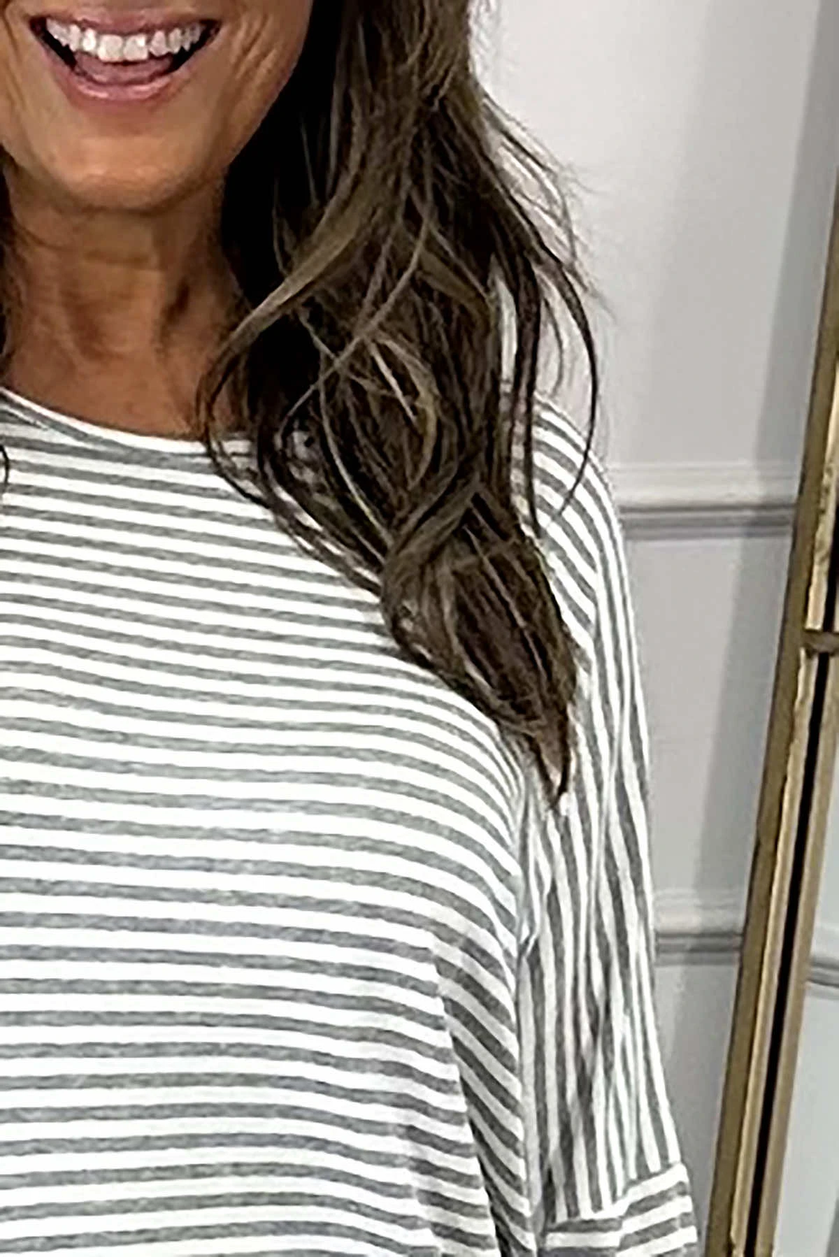 Introducing our Frances Stripe Sweat Top, the perfect addition to your wardrobe. Featuring a classic all-over stripe design and fitted sleeves, this top is made with soft fabric for maximum comfort. Stay on-trend and stylish in this must-have piece.