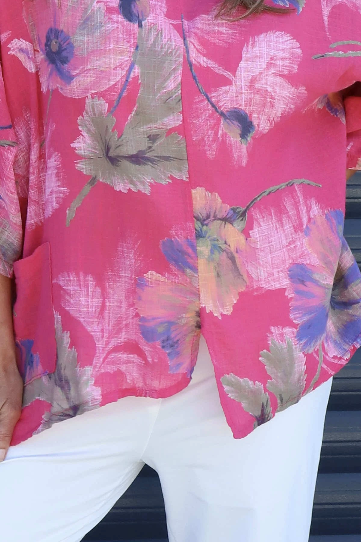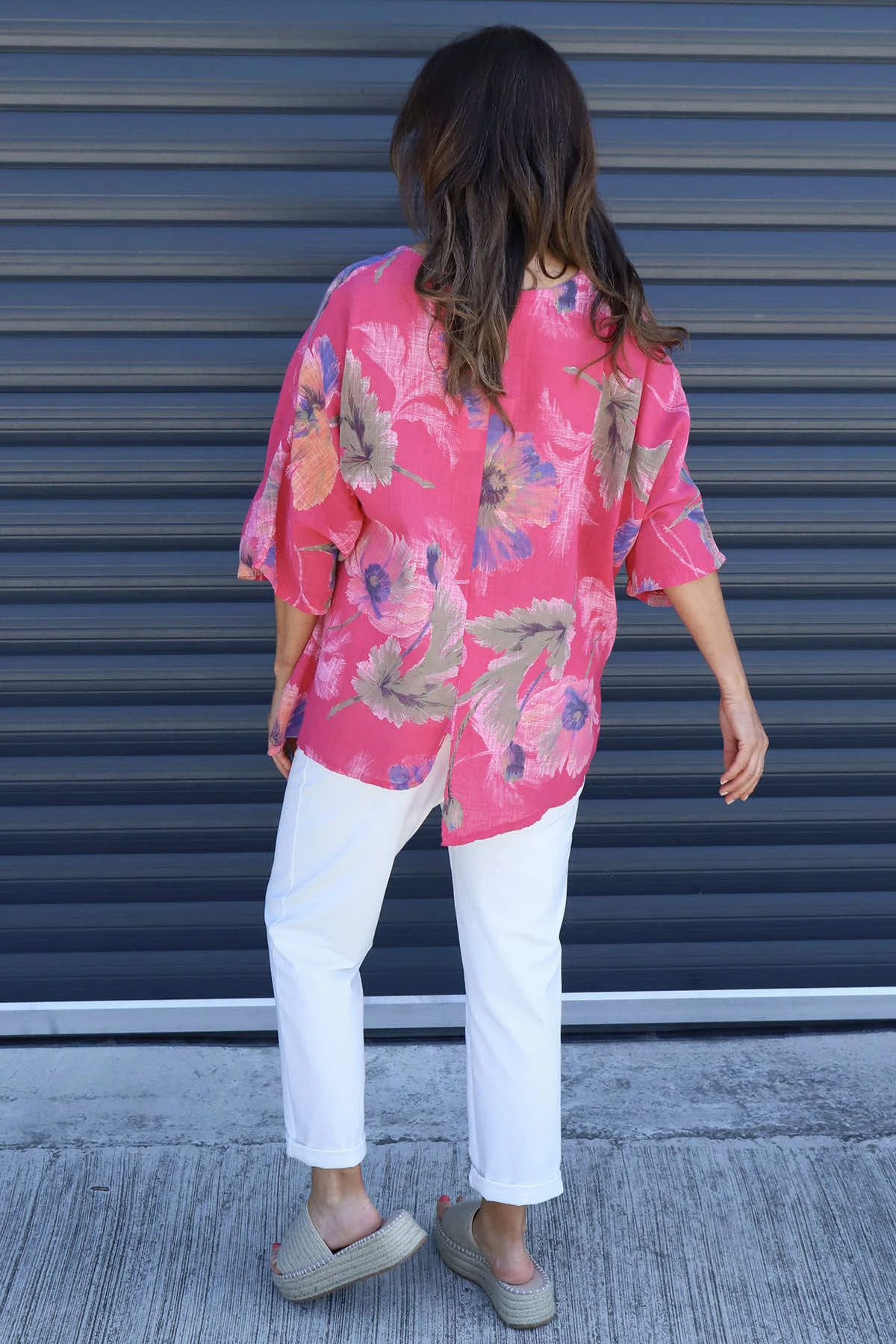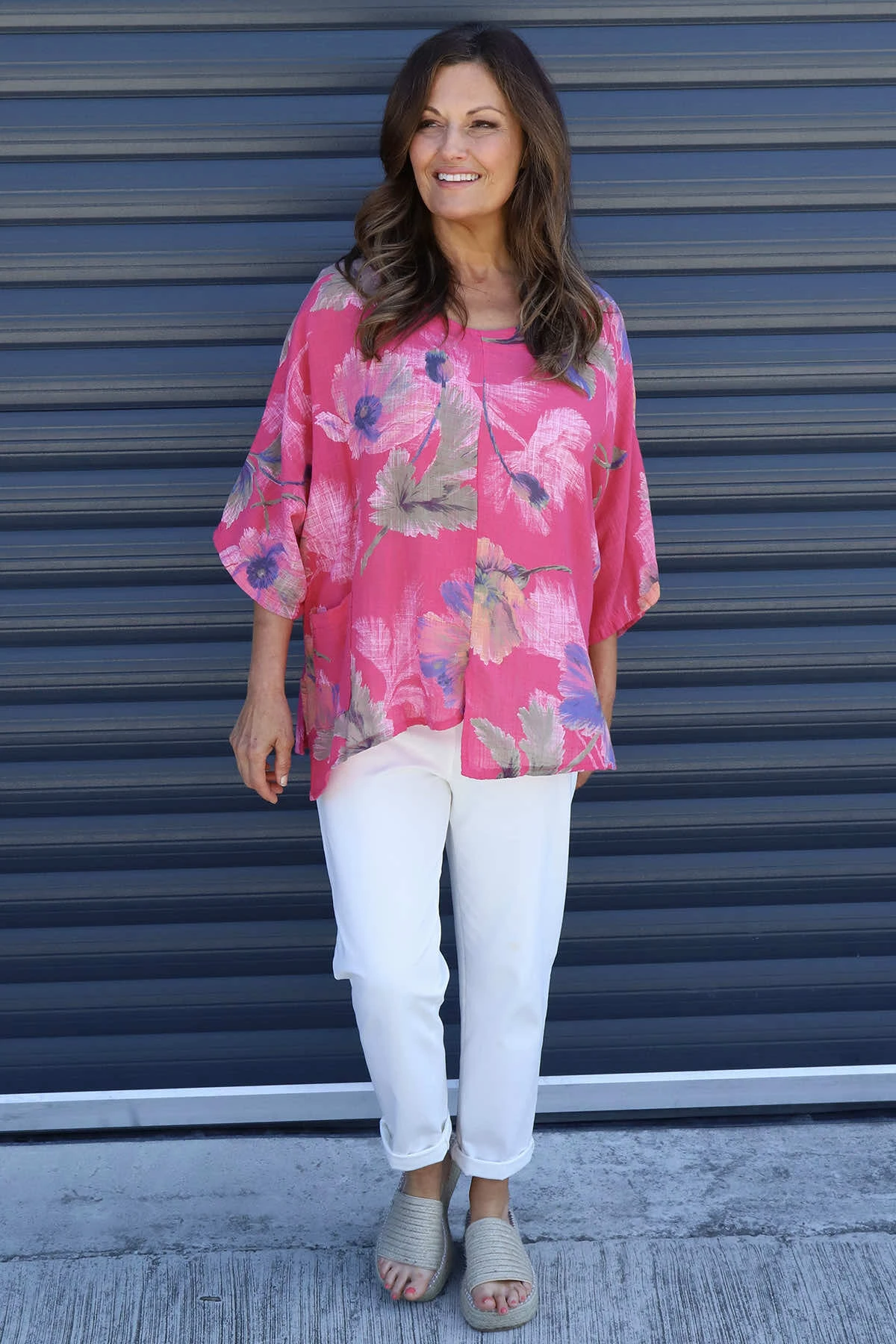 Refresh your wardrobe with the Isolde Botanical Print Linen Top, designed for comfort and style. Crafted from a breathable linen-cotton blend, it features an all-over botanical print, a flattering round neckline, and relaxed batwing sleeves. Practical details like a handy pocket and hemline splits add ease and versatility, making this top a perfect choice for everyday wear.