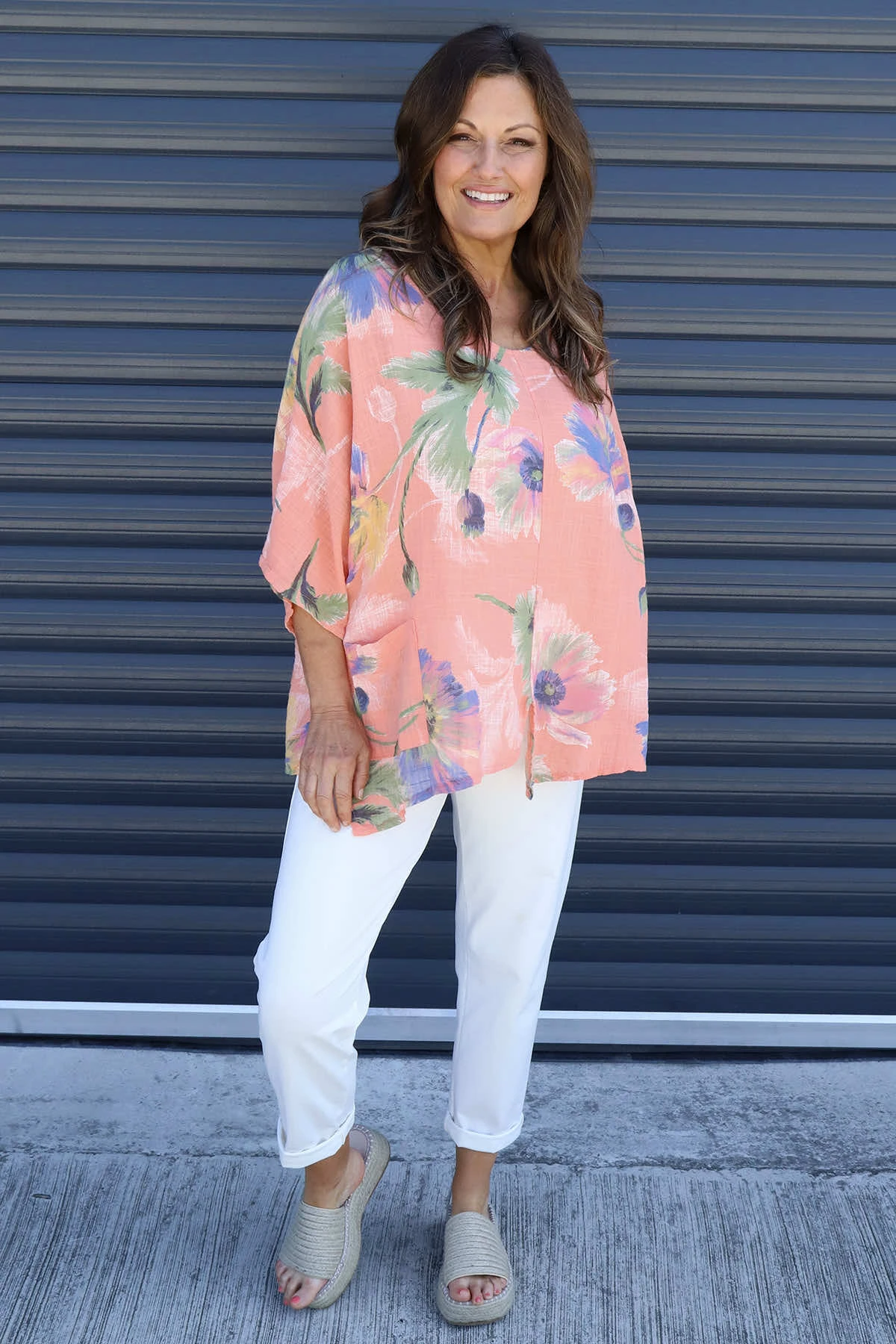 Refresh your wardrobe with the Isolde Botanical Print Linen Top, designed for comfort and style. Crafted from a breathable linen-cotton blend, it features an all-over botanical print, a flattering round neckline, and relaxed batwing sleeves. Practical details like a handy pocket and hemline splits add ease and versatility, making this top a perfect choice for everyday wear.