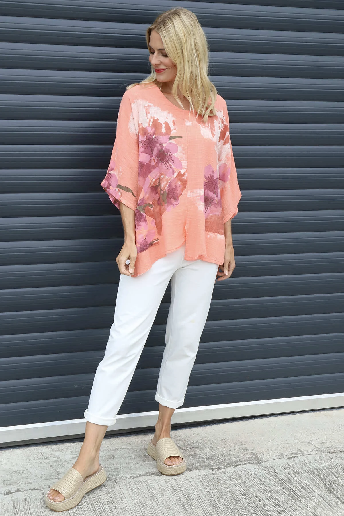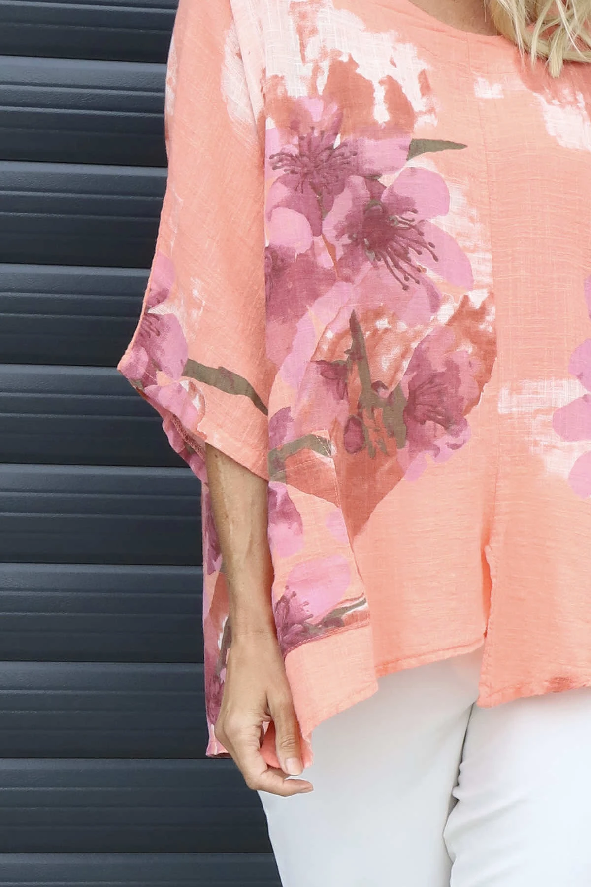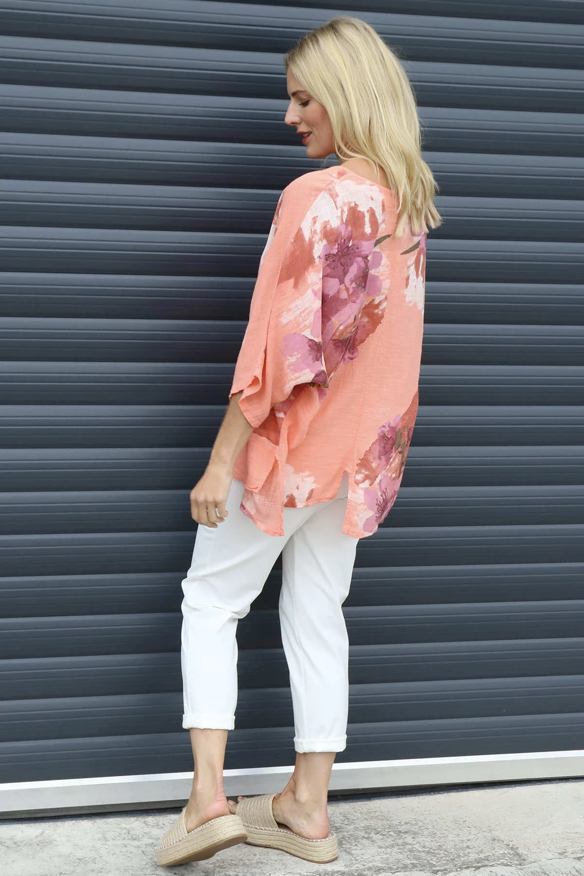 Update your wardrobe with the Isolde Floral Print Linen Top. Made from a breathable linen-cotton blend, it features relaxed batwing sleeves and a flattering round neckline for easy movement. Practical hemline splits and a convenient pocket add thoughtful details, while the delicate floral print brings a fresh, natural look. This top supports your everyday comfort with effortless elegance.