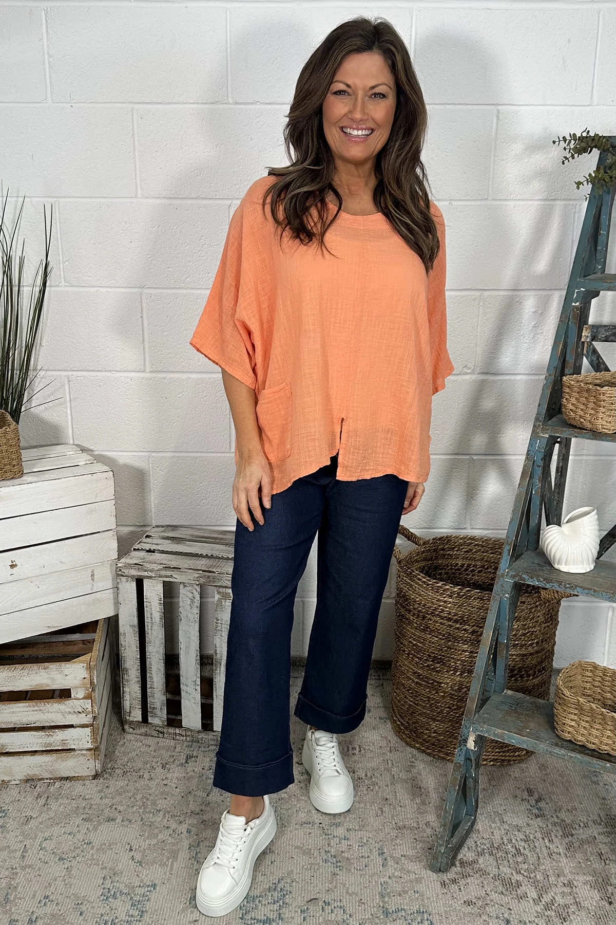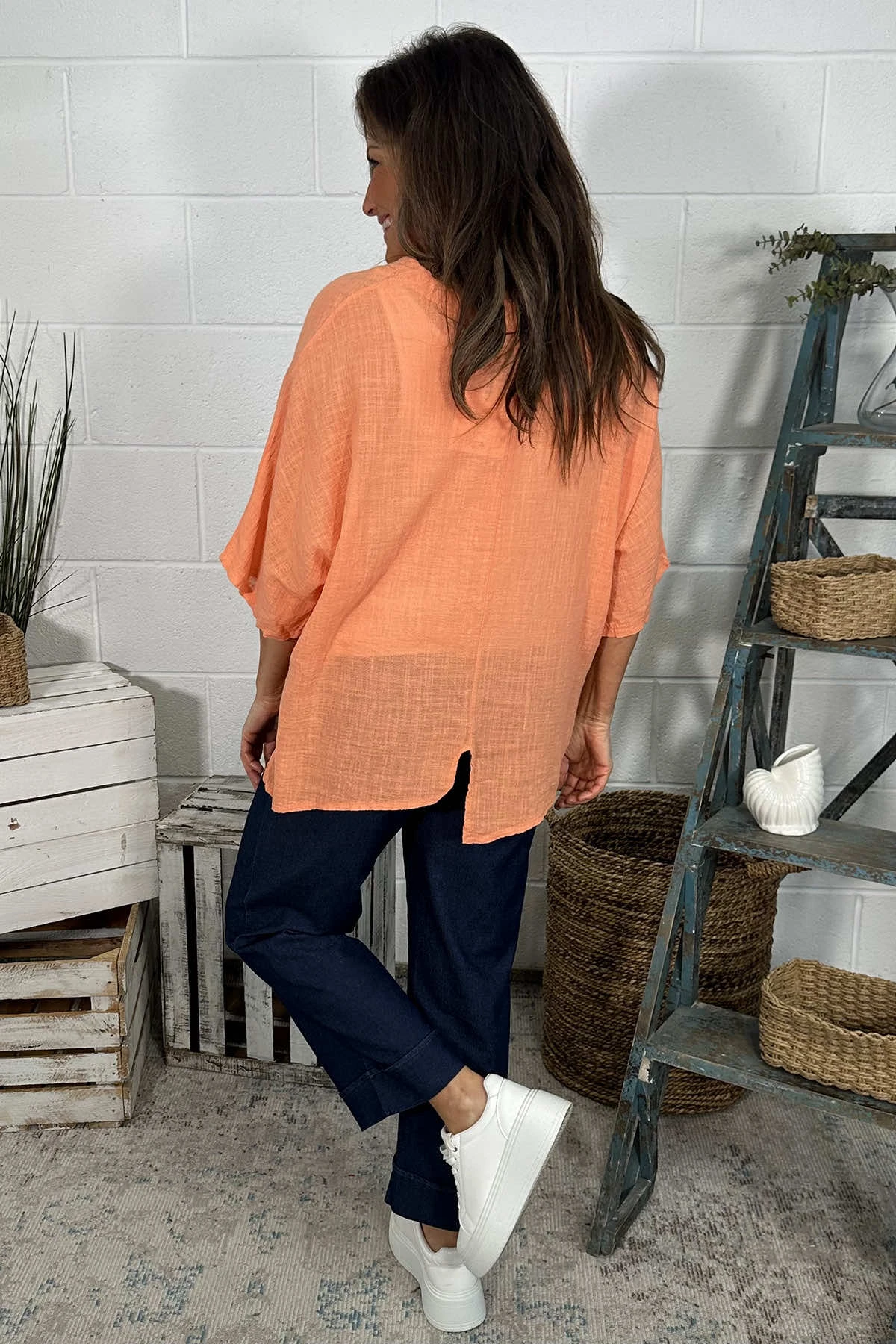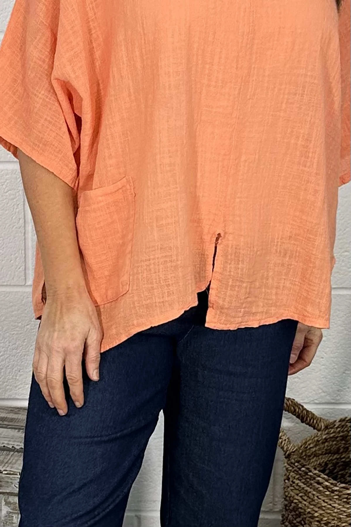 Indulge with our Isolde Linen Top. Crafted with a luxurious blend of cotton and linen, this top features a pockets, slight v-neckline and chic batwing sleeves. The hemline is accented with splits for added style. Elevate your wardrobe with this must-have piece.