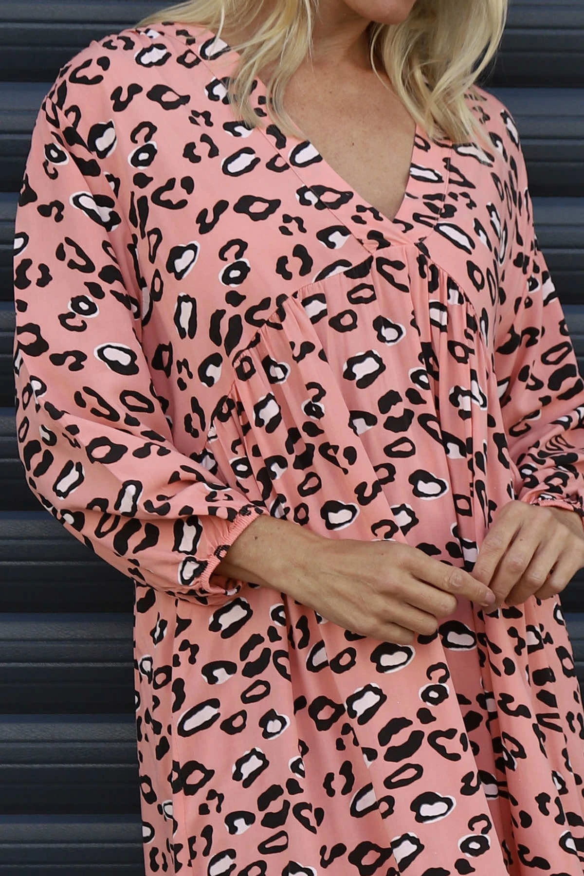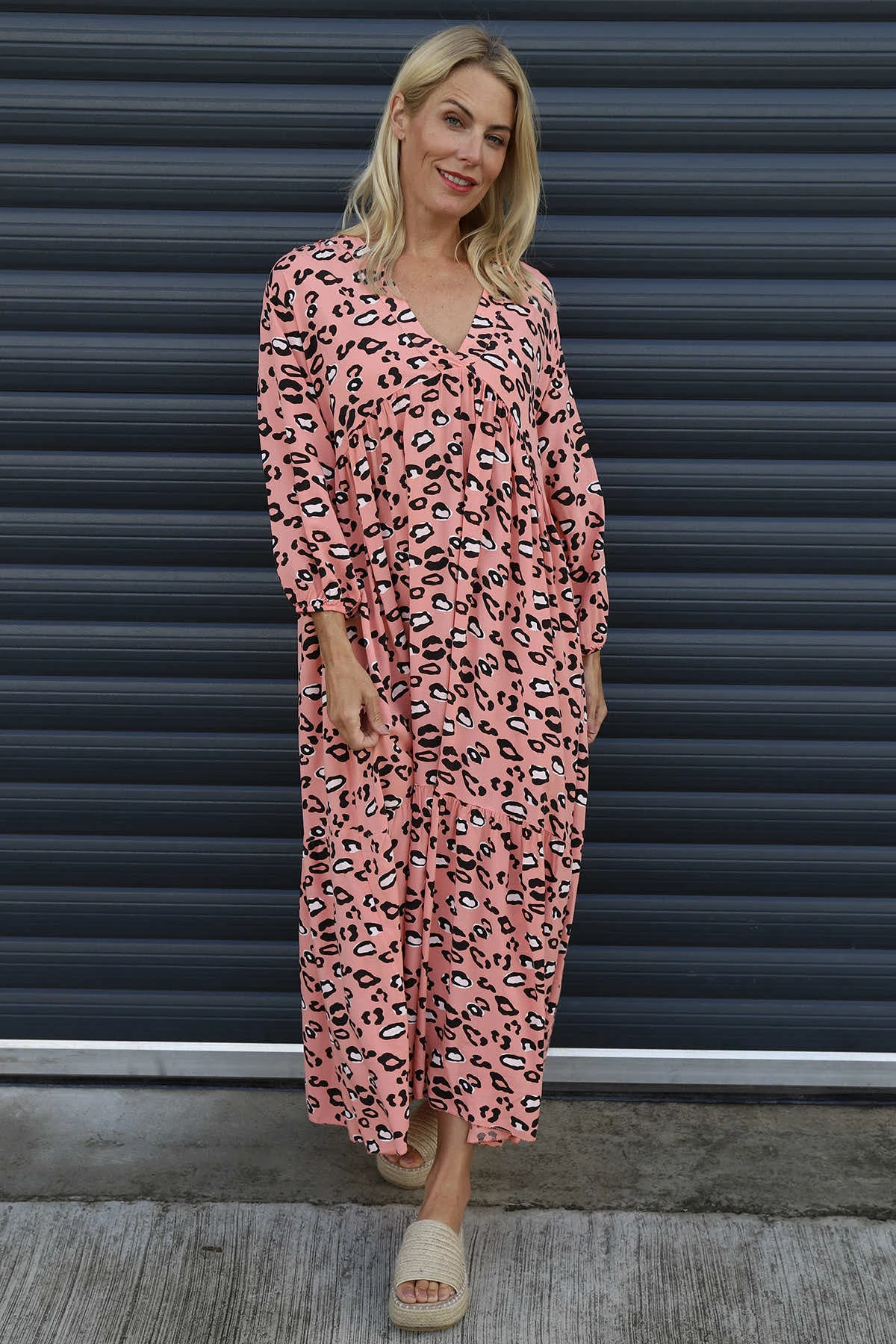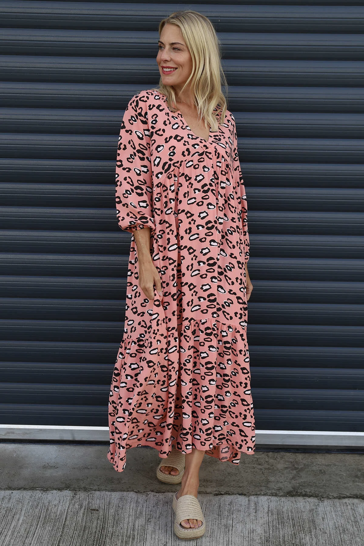 The Izarra Leopard Print Dress is designed to make you feel confident and stylish. Its V neckline beautifully frames the face, while the all-over leopard print adds a bold, fashionable touch. With sleeves finished by elasticated cuffs, this dress offers both comfort and a secure fit. The tiered skirt flows gracefully, creating a flattering silhouette perfect for any occasion. Embrace your confidence with this effortlessly chic and comfortable dress.