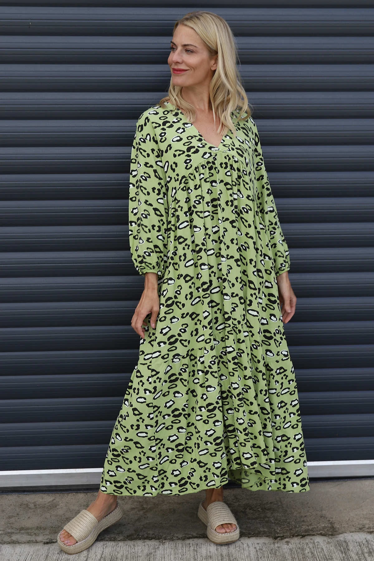 Izarra Leopard Print Dress Green
