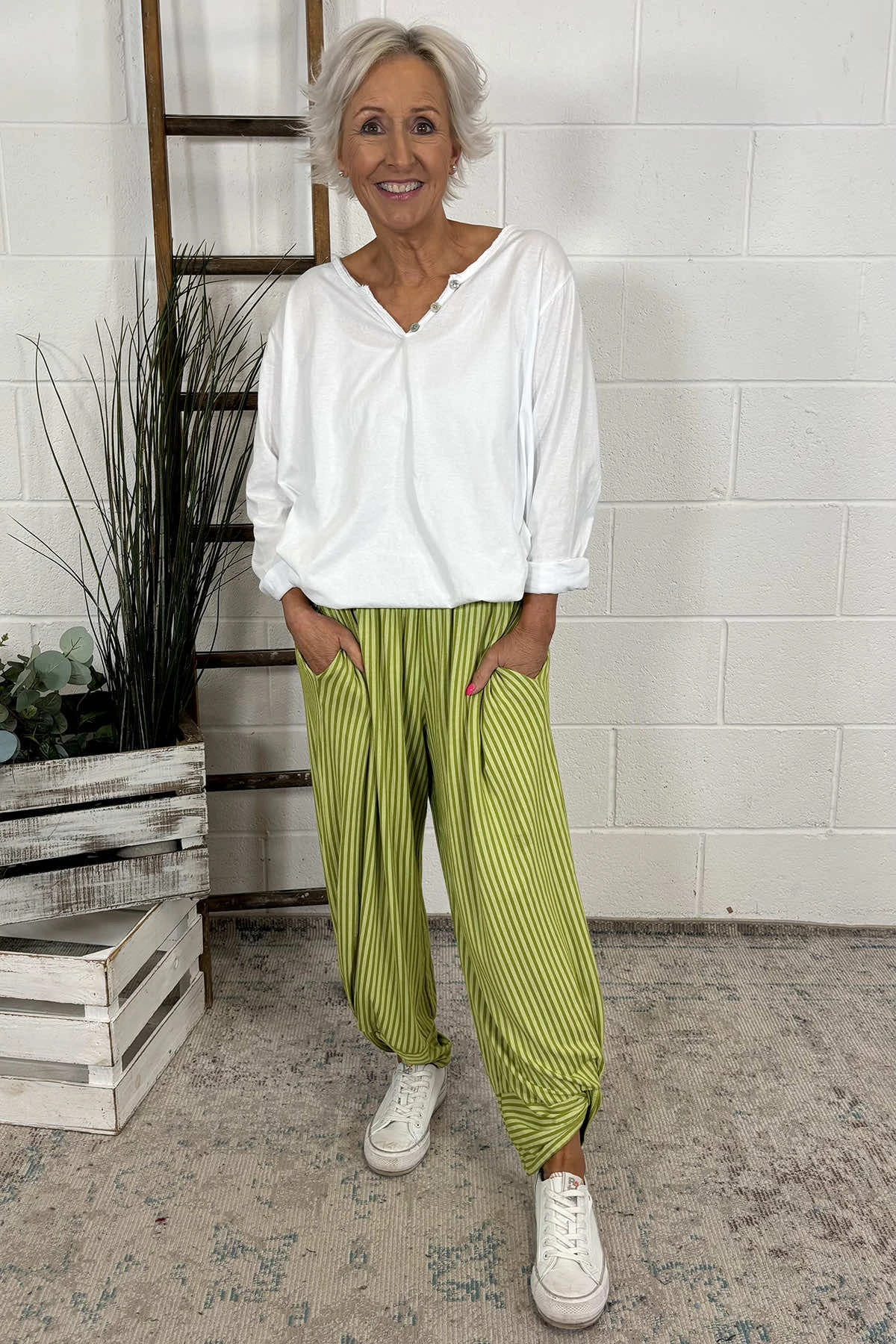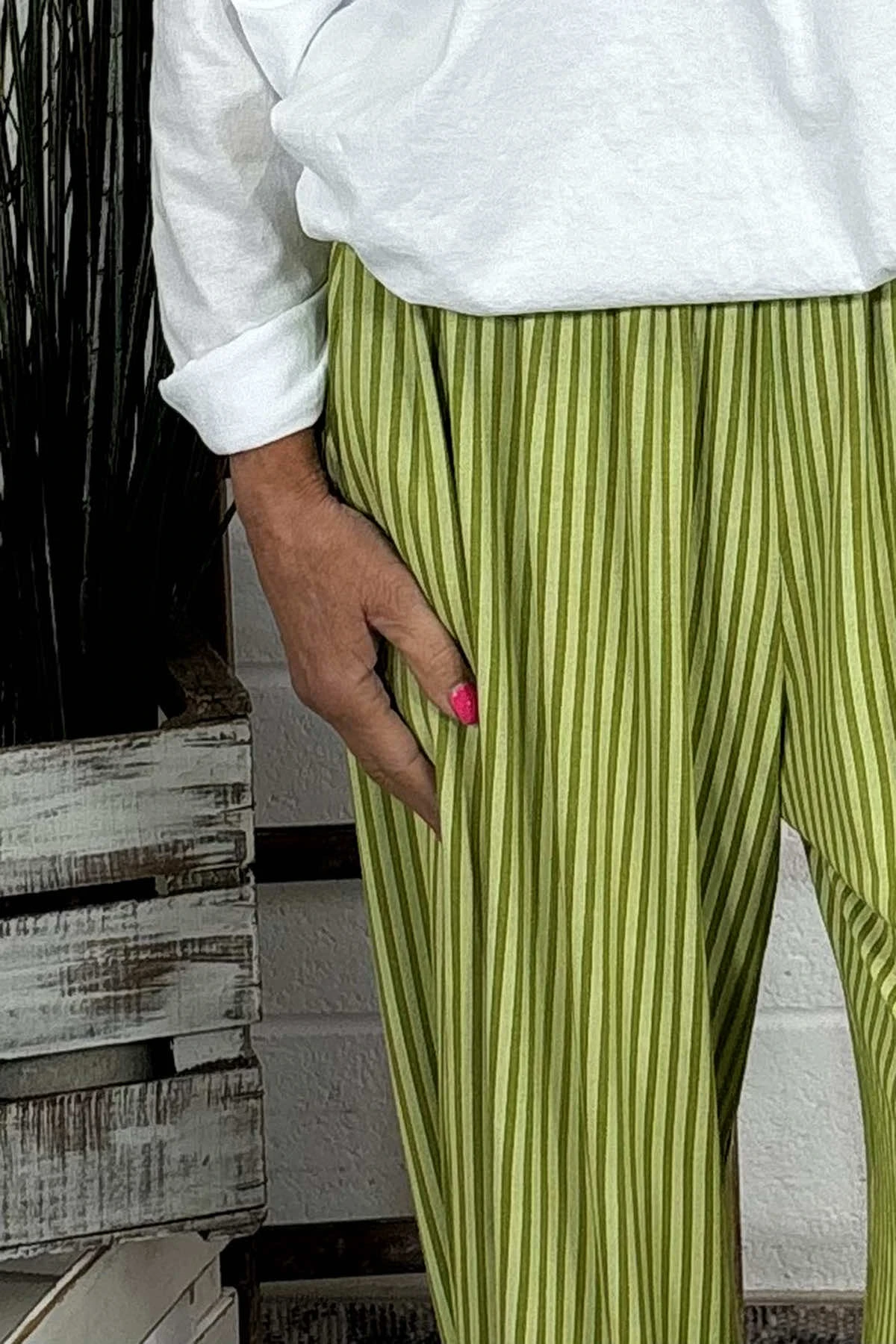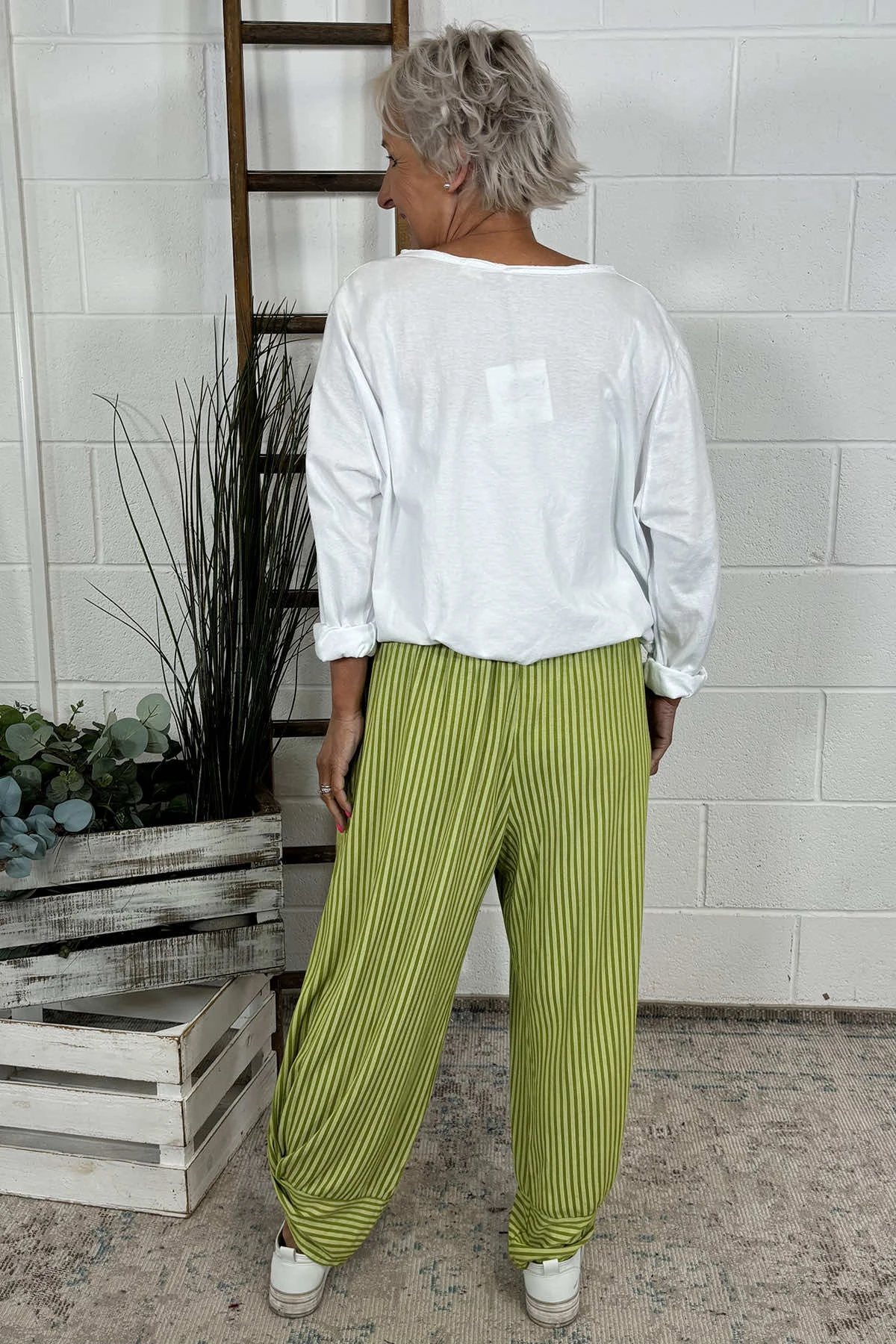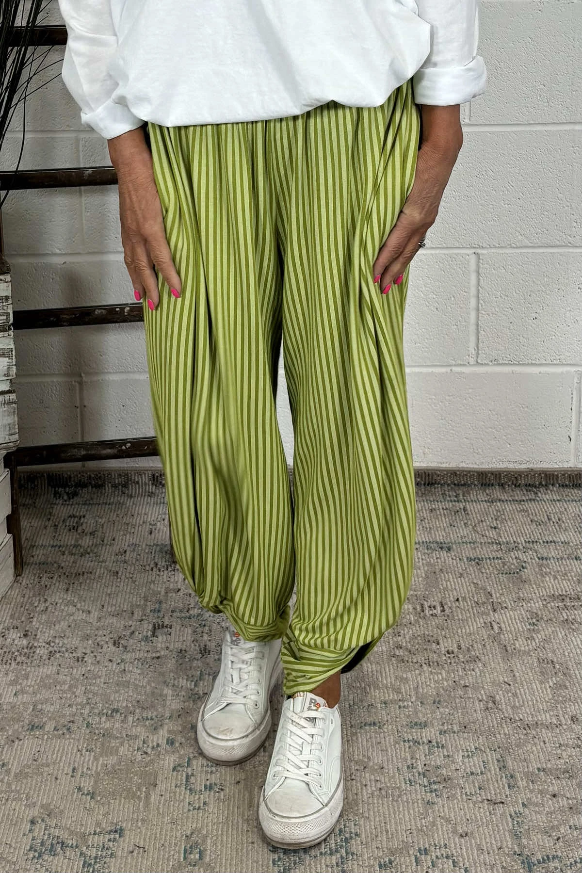 Stripe up your wardrobe this new season with the Made in Italy Jacinda Stripe Cotton Trousers. Super flattering and easy to wear for any occasion. Featuring a harem style shaping, an elasticated waistband, pockets and detailing at the cuff. How will you style yours?