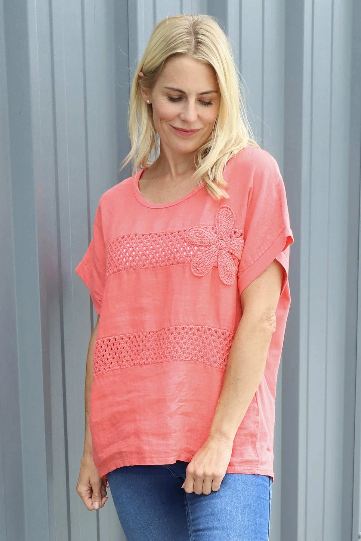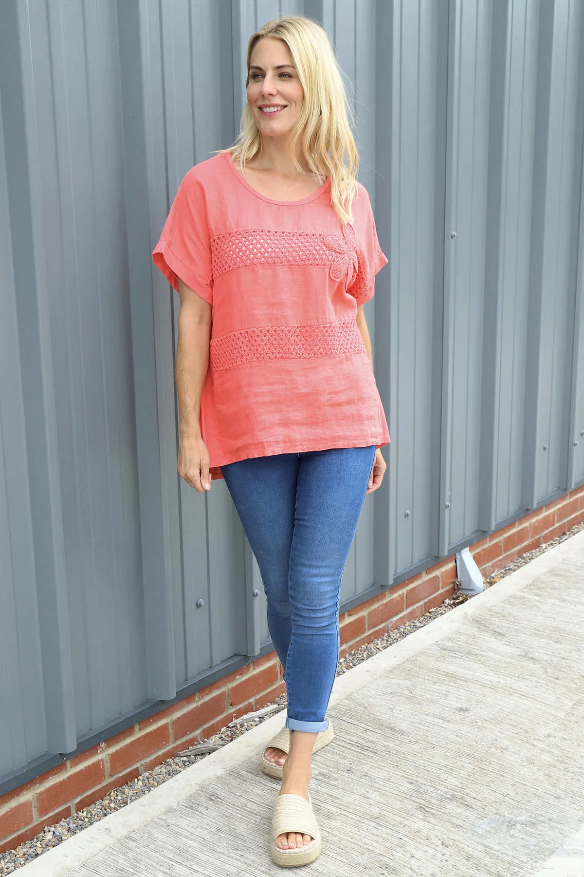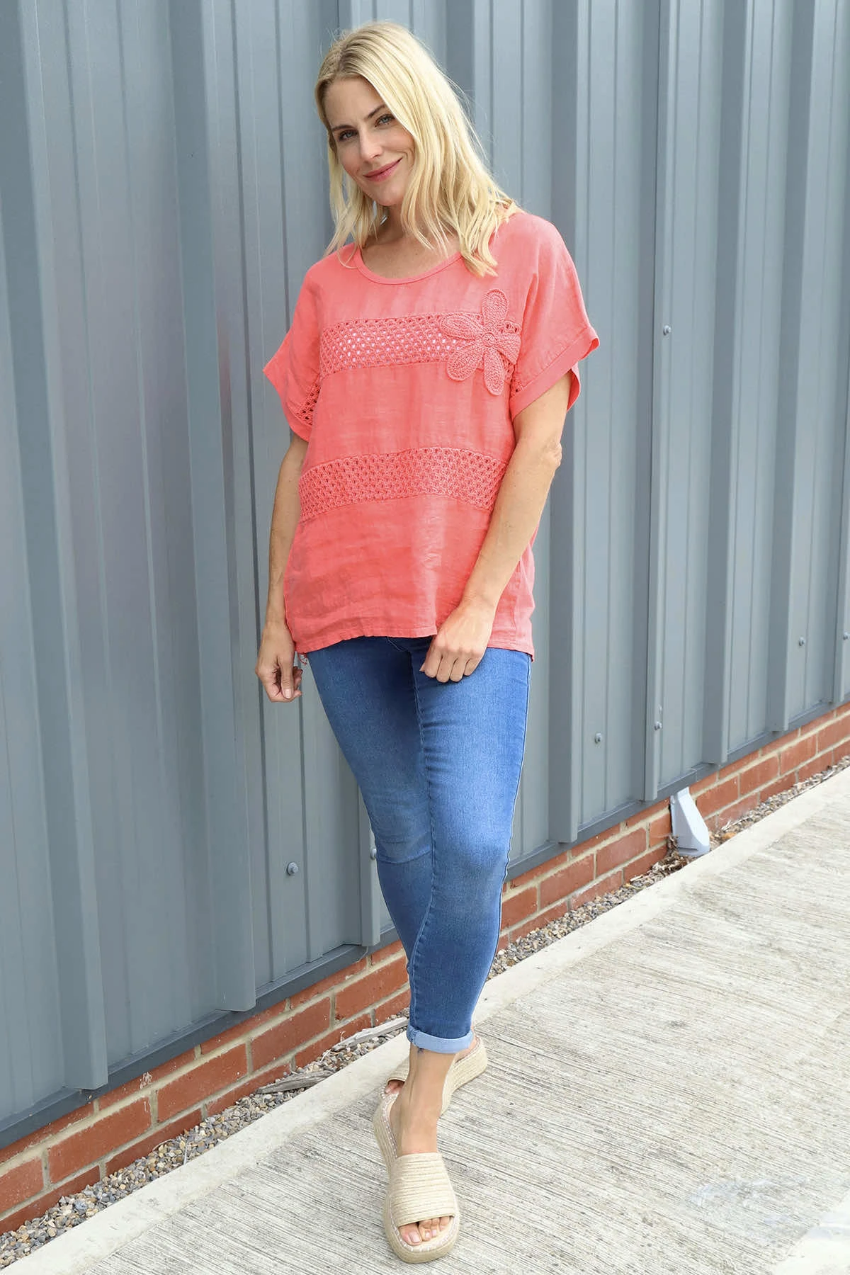 Update your wardrobe with the Jana Crochet Detail Cotton Top, designed for comfort and style. Made from soft cotton, it features delicate crochet detailing, short sleeves, and a flattering round neckline. Perfect for everyday wear, this top combines breathability with a touch of elegance to keep you feeling confident and comfortable all day long.