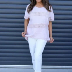 Jana Crochet Detail Cotton Top Pink