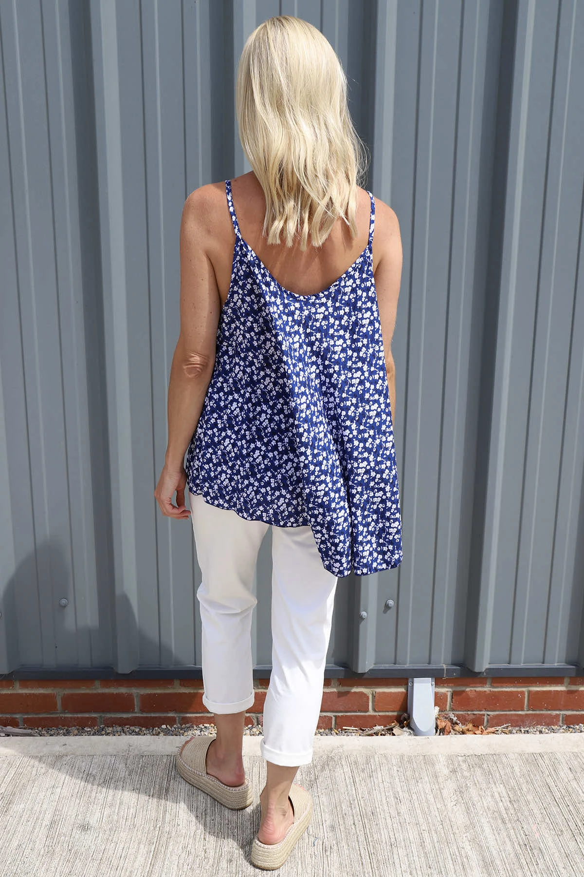 Update your wardrobe with the Jianna Ditsy Print Top. The Jianna Ditsy Print Top features a charming all-over print that adds subtle style. The thin straps and soft V neckline offer a delicate, flattering fit, while the floaty fabric provides lightweight comfort for all-day wear. This top is perfect for embracing a breezy, effortless look.