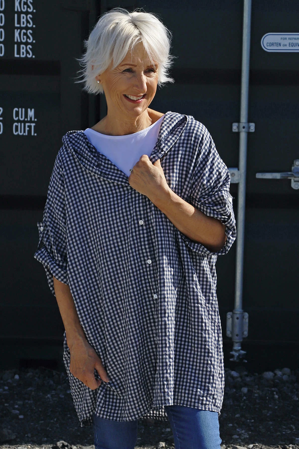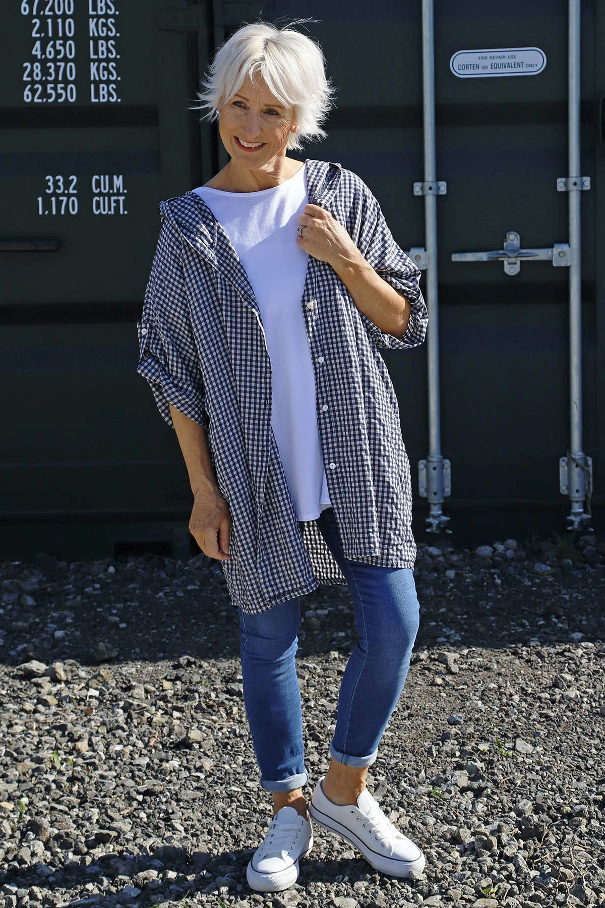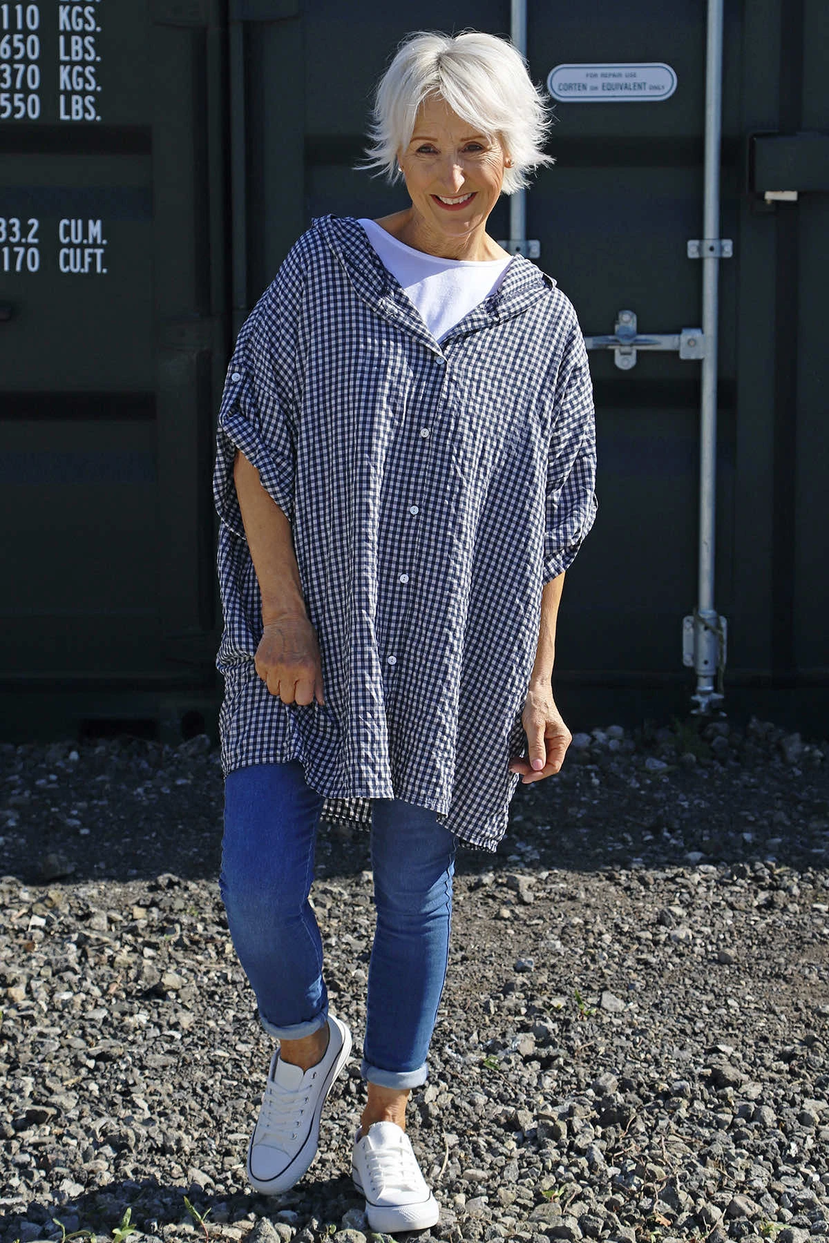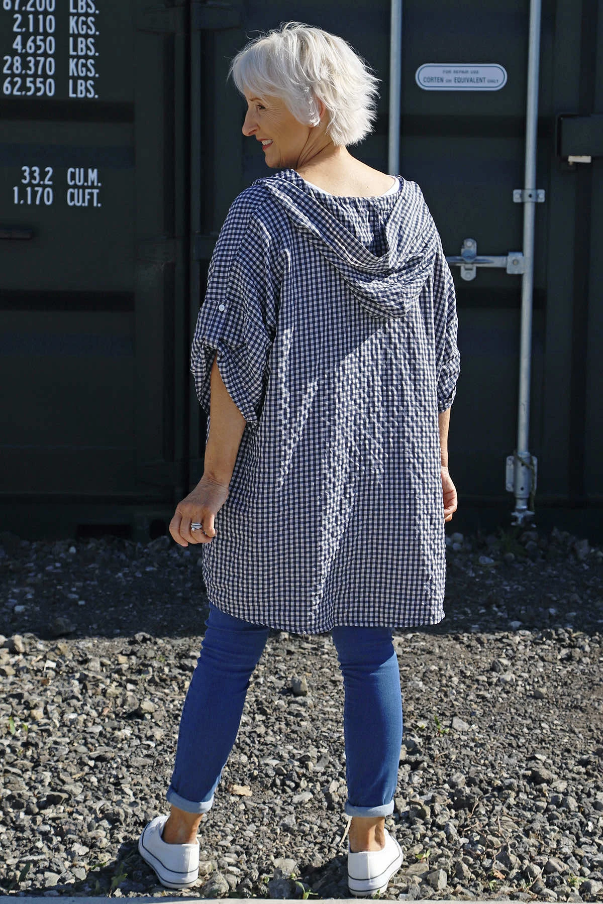 Kyan Gingham Hooded Cotton Shirt Navy