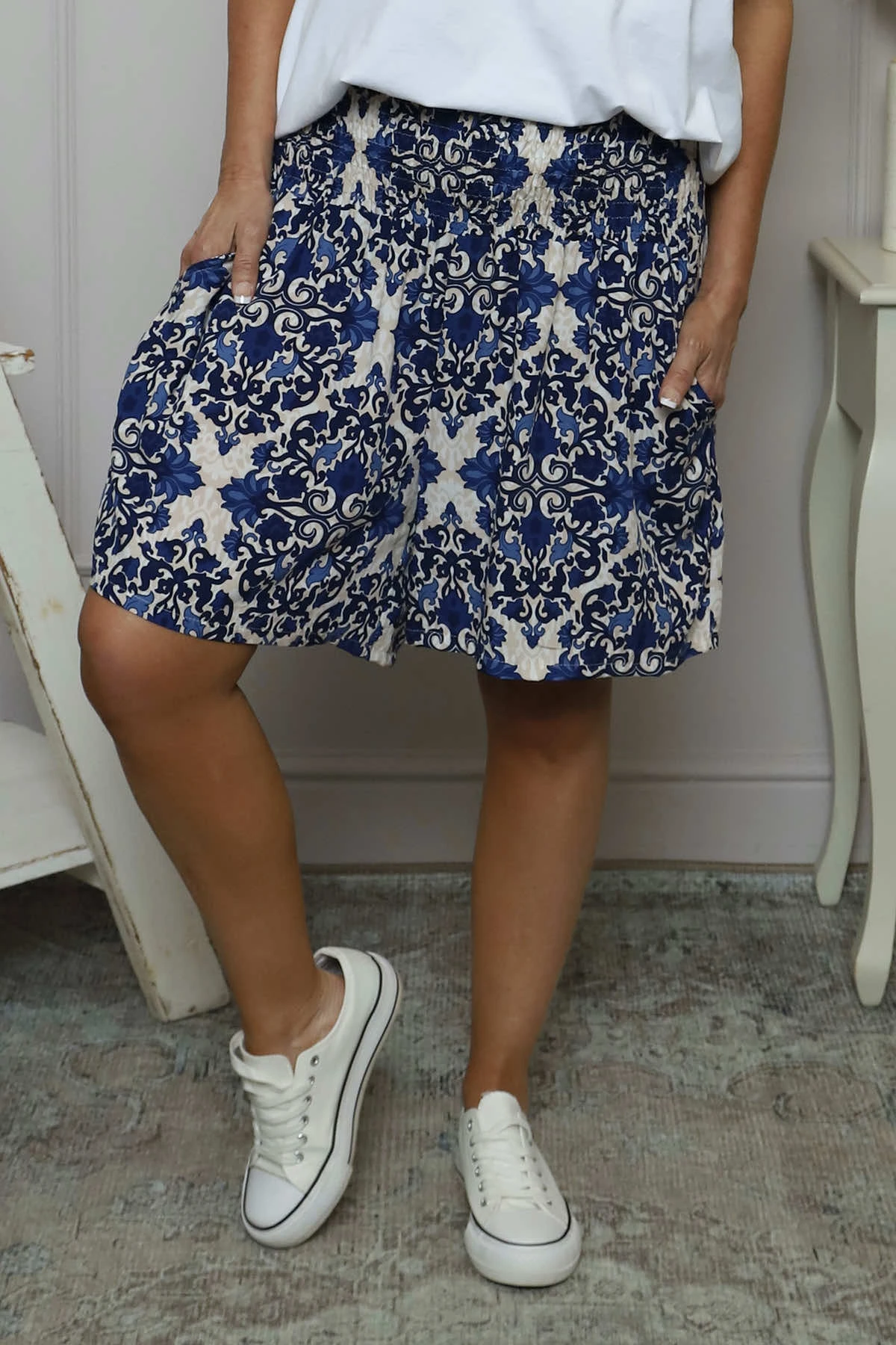 Elevate your summer look with our Kyler print shorts. These high waist shorts not only offer a perfect fit with their elasticated waistband, but also feature an all over print and pockets for added convenience. Stay stylish and comfortable all day long with these must-have shorts.