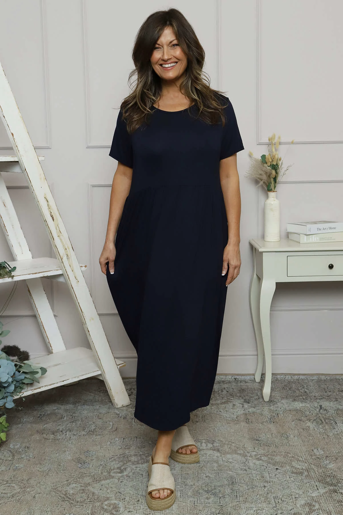 Stay cool and comfy in our Kylie Dress. Featuring short sleeves, round neckline, and pockets for the ultimate convenience. Perfect for any occasion, this dress has got you covered. Upgrade your wardrobe now!