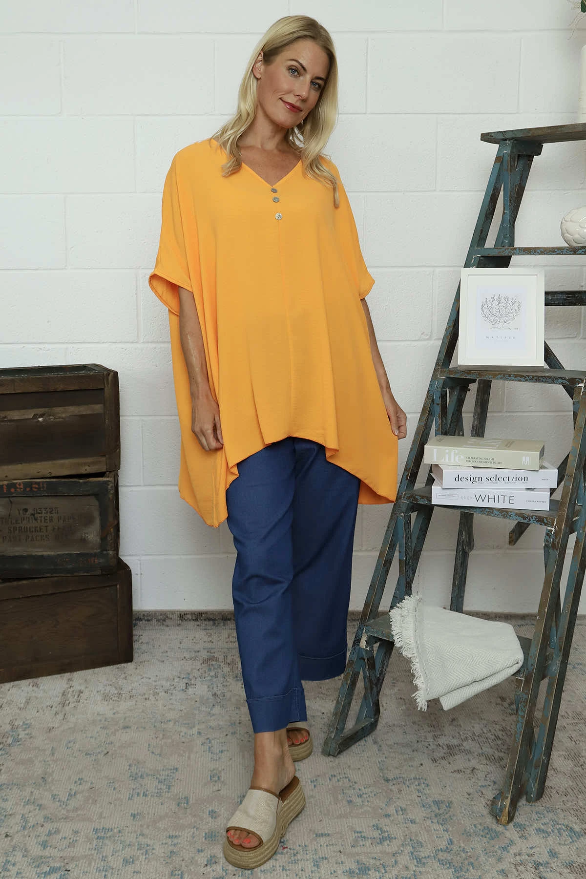 Elevate your wardrobe with our Lotus Button Top. Versatile enough to dress up or down, this top features a flattering v-neckline, button detail, and a stylish dipped hemline with seam detailing. Perfect for any occasion, this top will be a staple in your closet.
