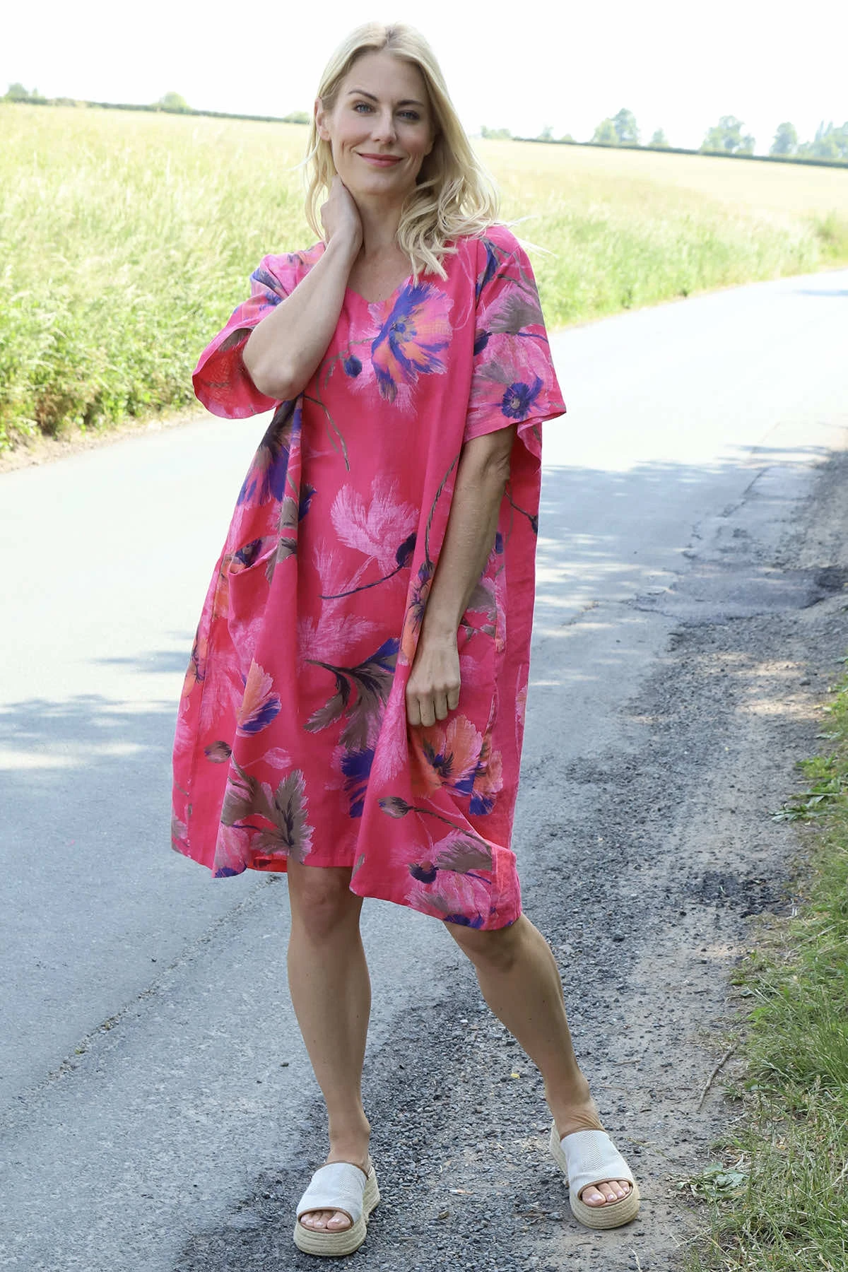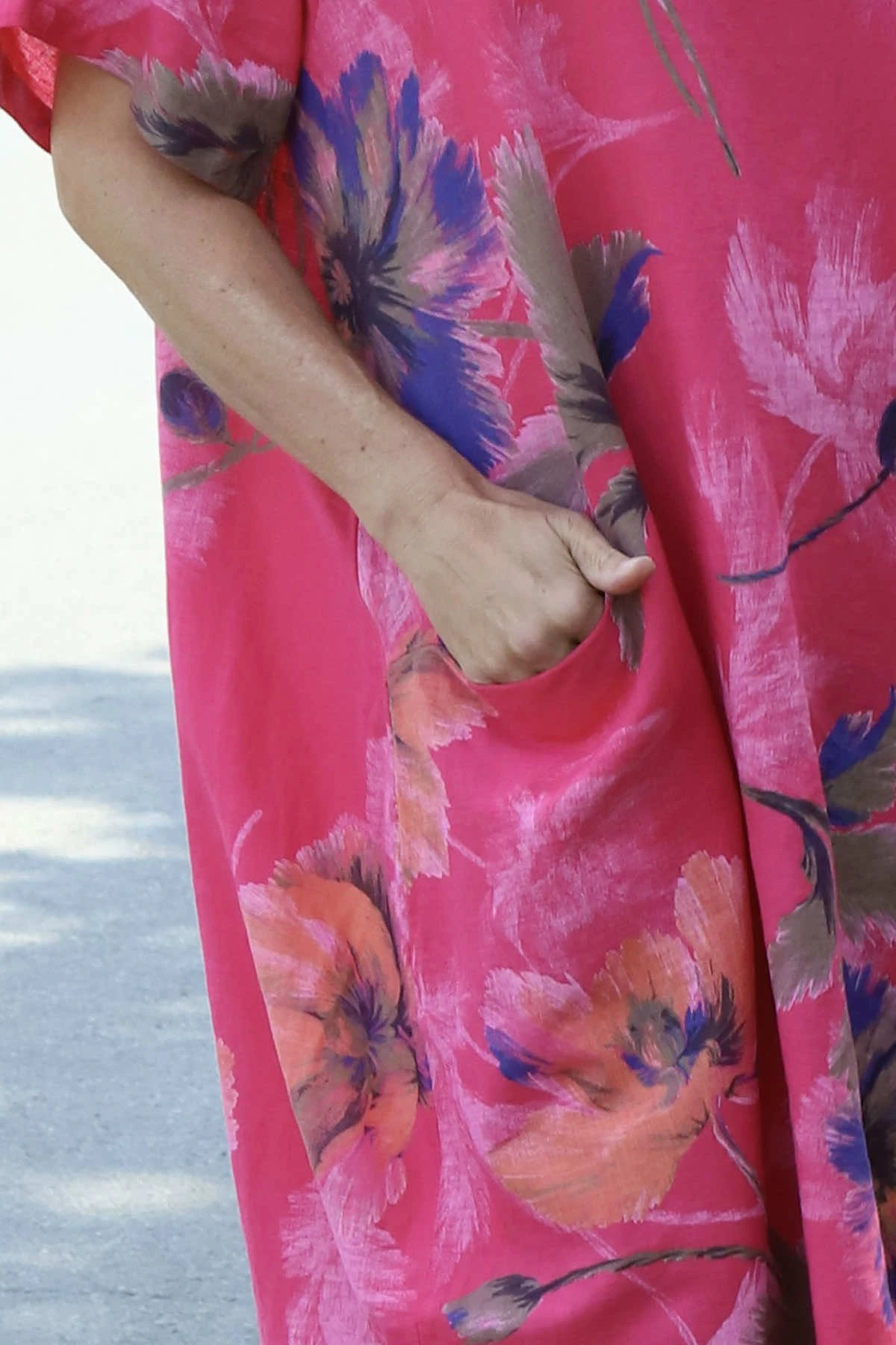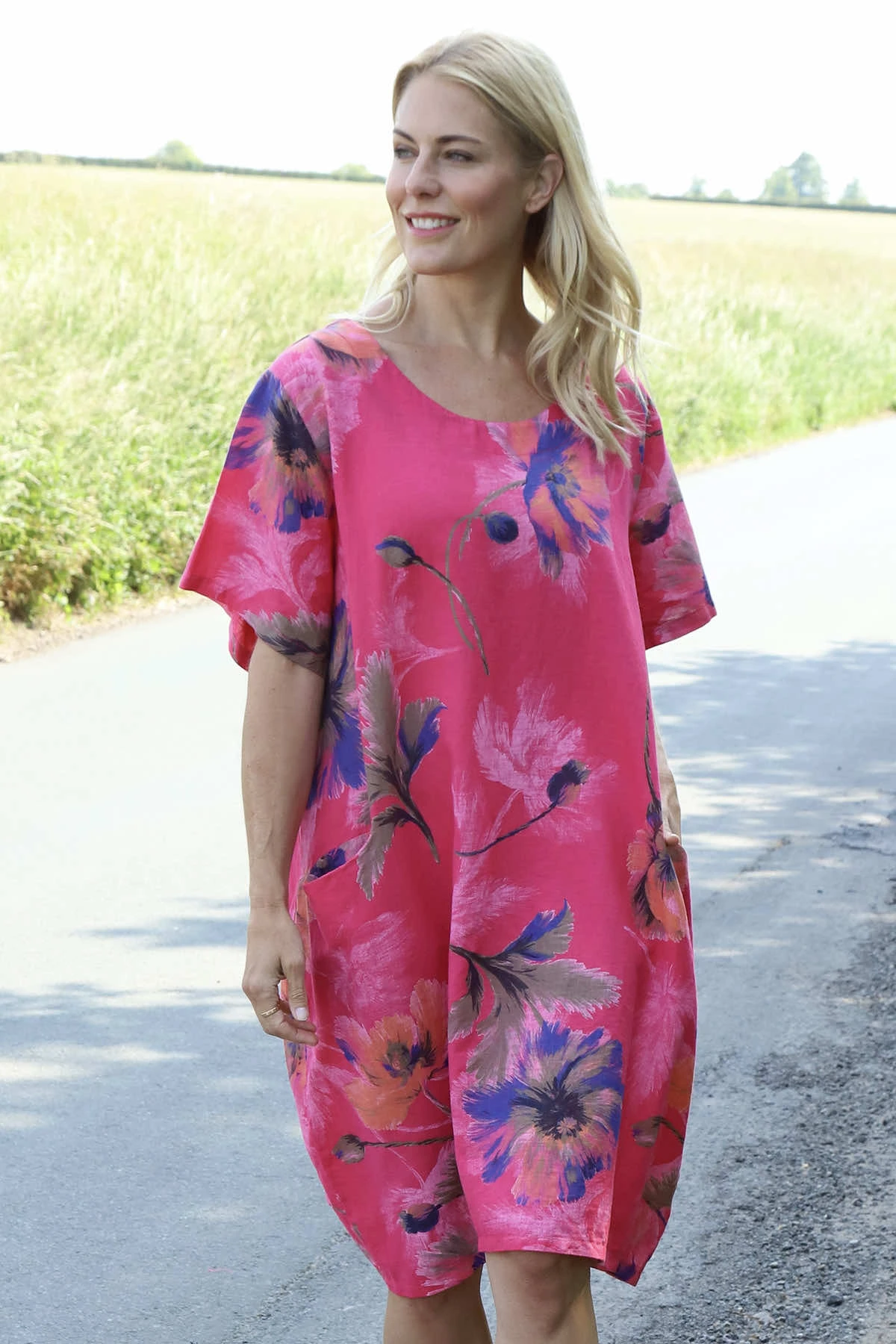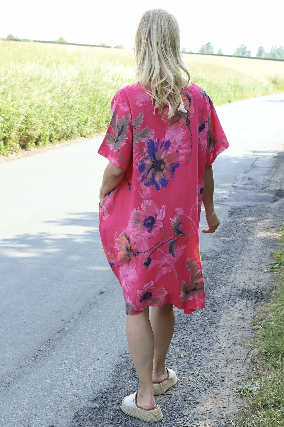 Embrace a fresh, confident look with the Milana Print Linen Dress. The Milana Print Linen Dress combines comfort and style with its breathable linen fabric and vibrant bold floral print. Featuring a flattering round neckline, practical pockets, and short sleeves, this dress is perfect for effortless everyday wear.