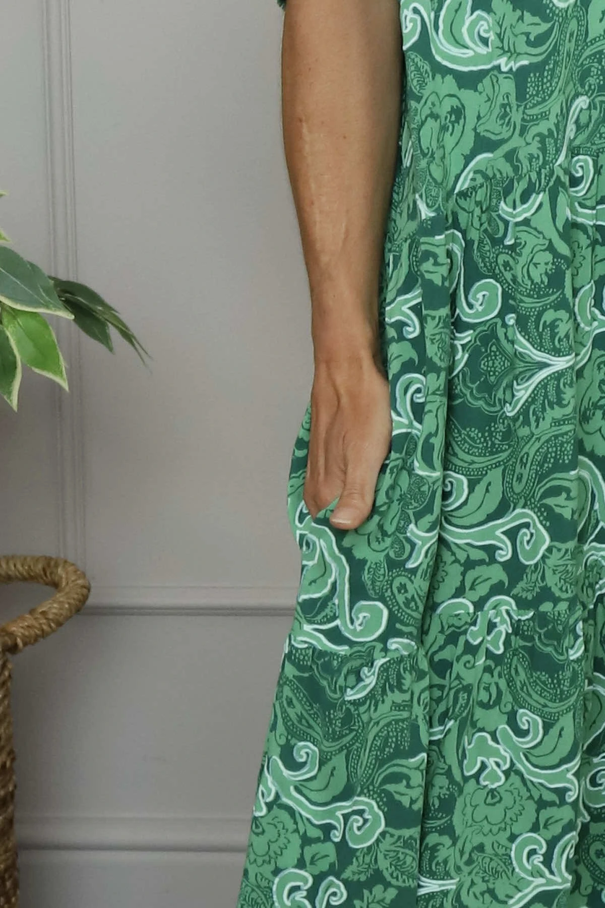 The Norma Print Dress combines style and comfort with its charming all-over print design. Featuring a flattering tiered skirt that creates beautiful movement, a classic round neckline, practical short sleeves and pockets, this versatile dress is perfect for both casual outings and special occasions. The thoughtful design ensures you’ll feel confident and comfortable all day long.