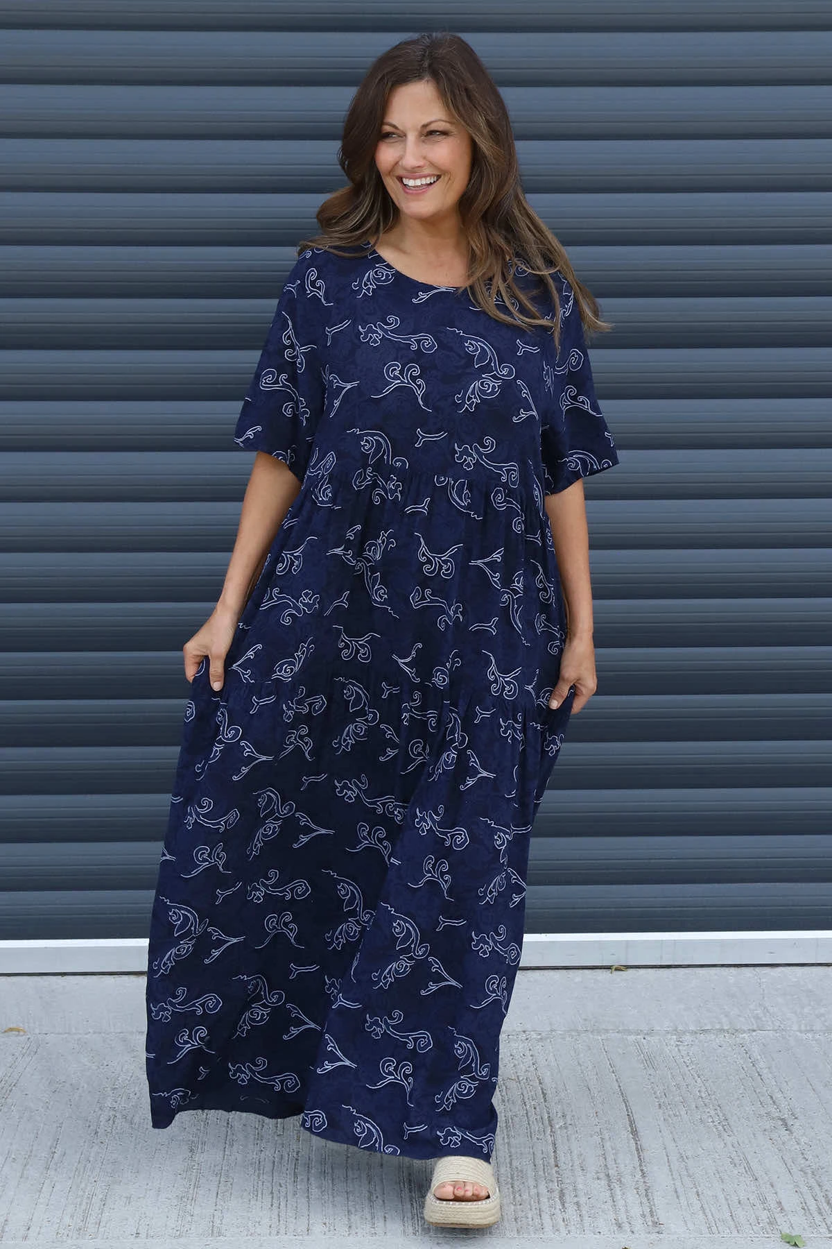 The Norma Print Dress combines style and comfort with its charming all-over print design. Featuring a flattering tiered skirt that creates beautiful movement, a classic round neckline, practical short sleeves and pockets, this versatile dress is perfect for both casual outings and special occasions. The thoughtful design ensures you’ll feel confident and comfortable all day long.