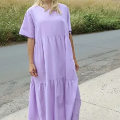 Introducing the Nova Linen Dress. The Nova Linen Dress is crafted from a breathable linen-cotton blend for all-day comfort. Featuring a flattering round neckline and short sleeves, this dress offers effortless style and ease. The tiered skirt adds a touch of playful movement, making it perfect for both casual outings and relaxed gatherings. Embrace comfort and confidence with this versatile wardrobe essential.