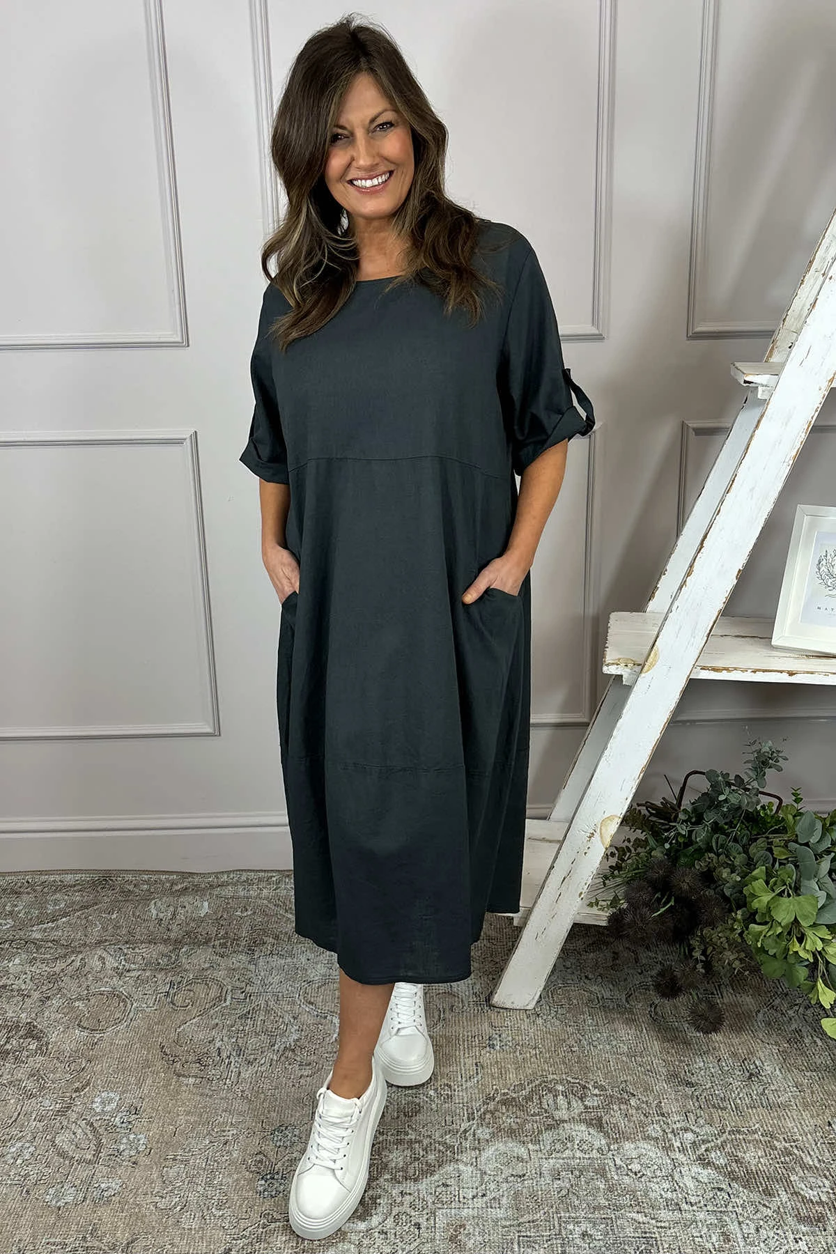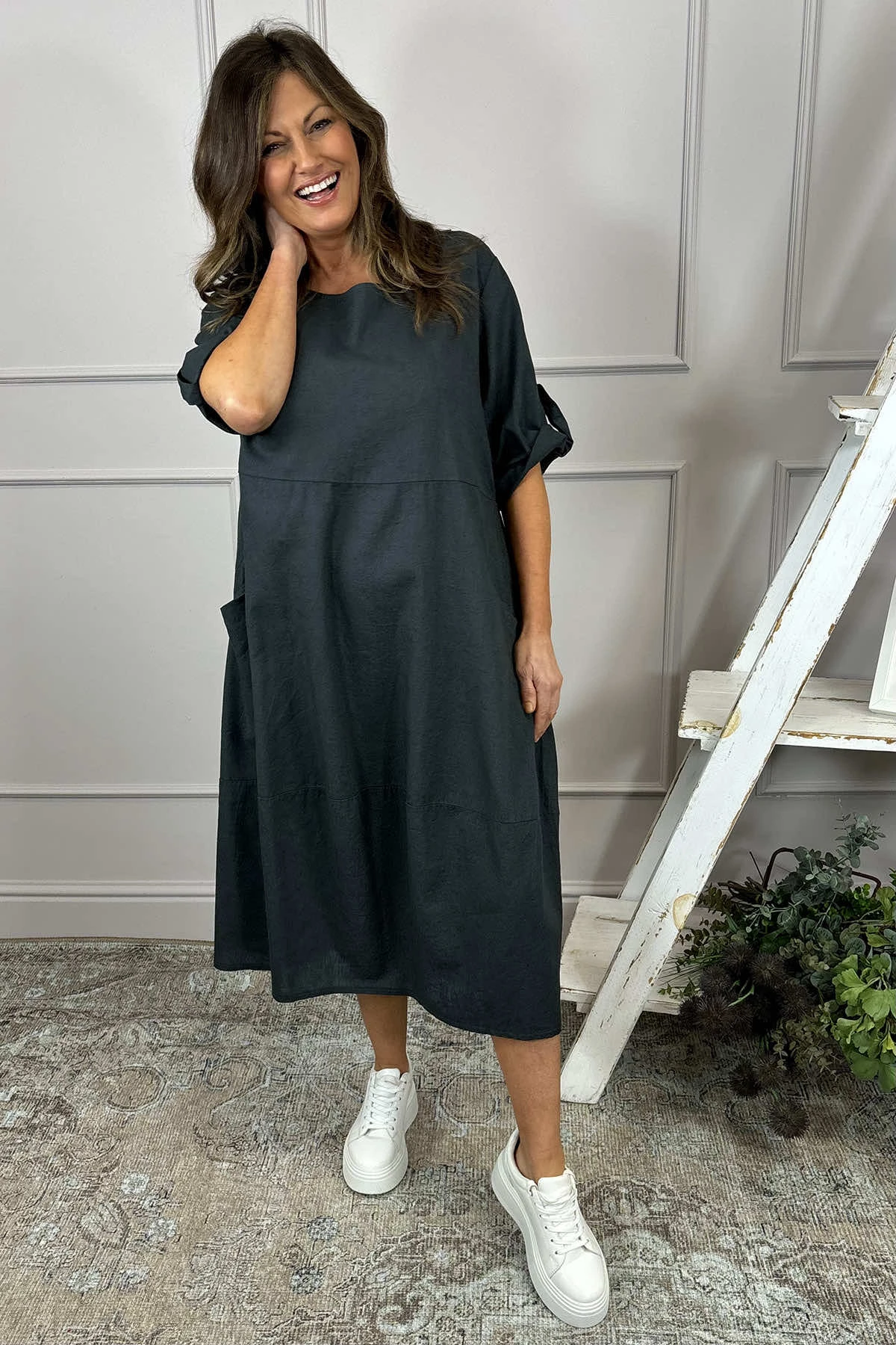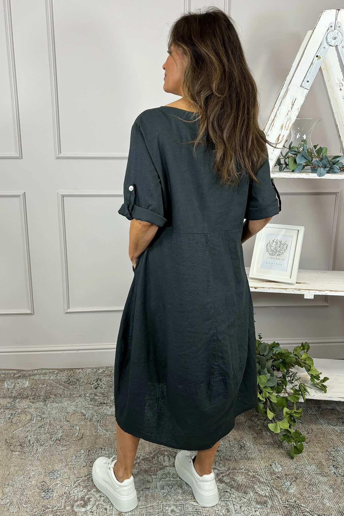Penelope Pocket Linen Dress Charcoal
