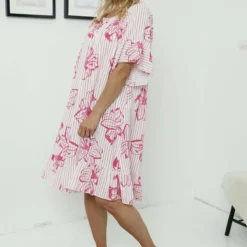 Fabiola Print Bardot Tunic Fuchsia