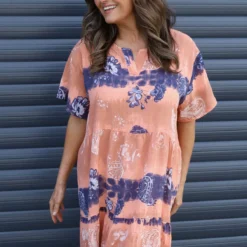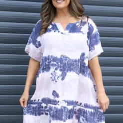 Erminia V-Neck Print Cotton Tunic Light Blue