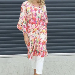 Tahlia Floral Linen Tunic Fuchsia