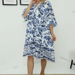 Erasto Print Tunic Navy
