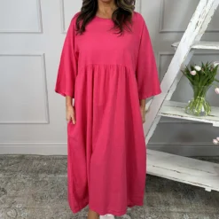 Francesca Linen Dress Hot Pink